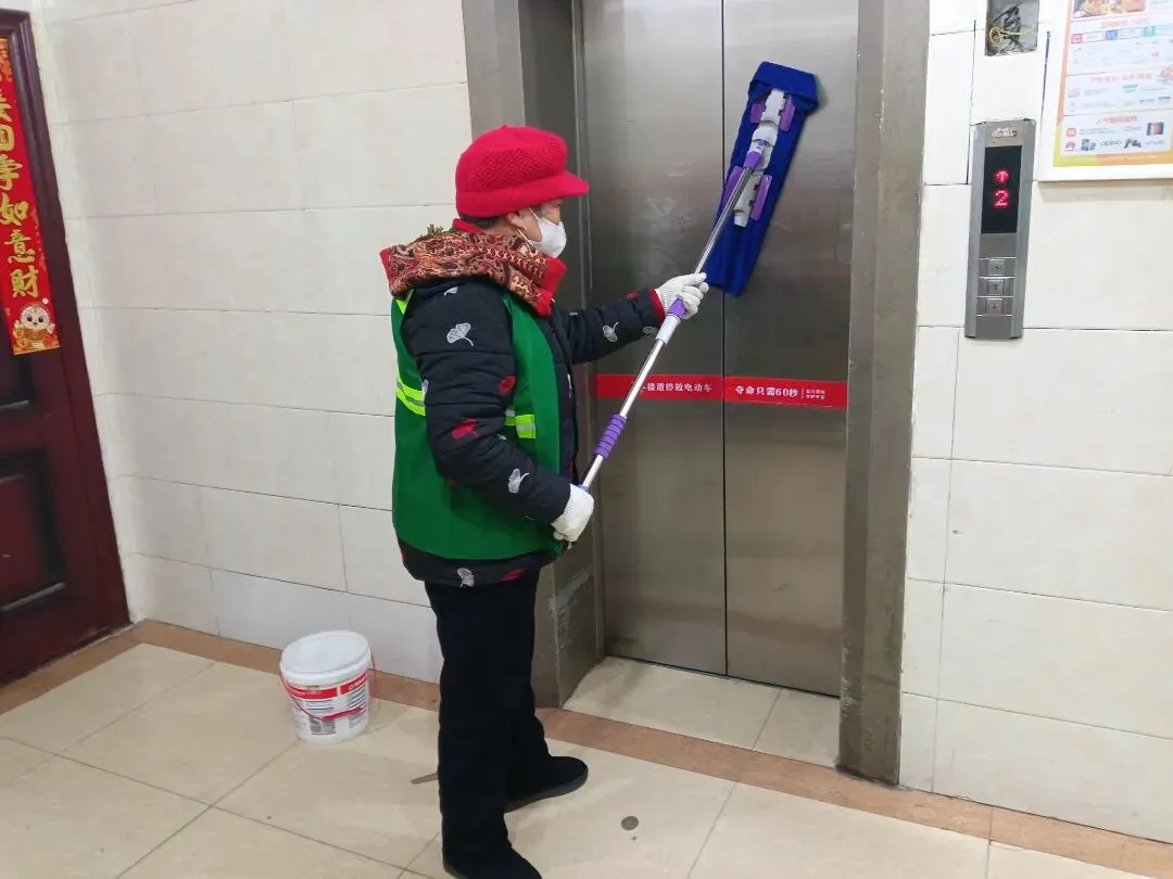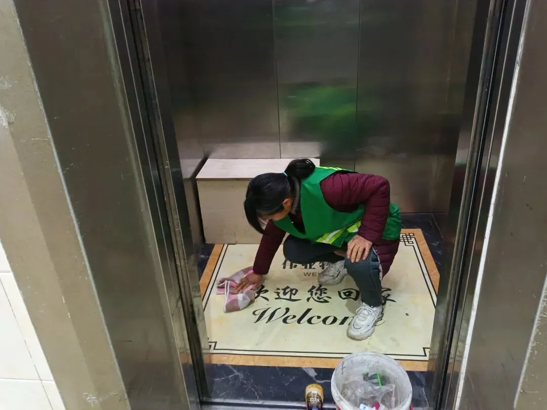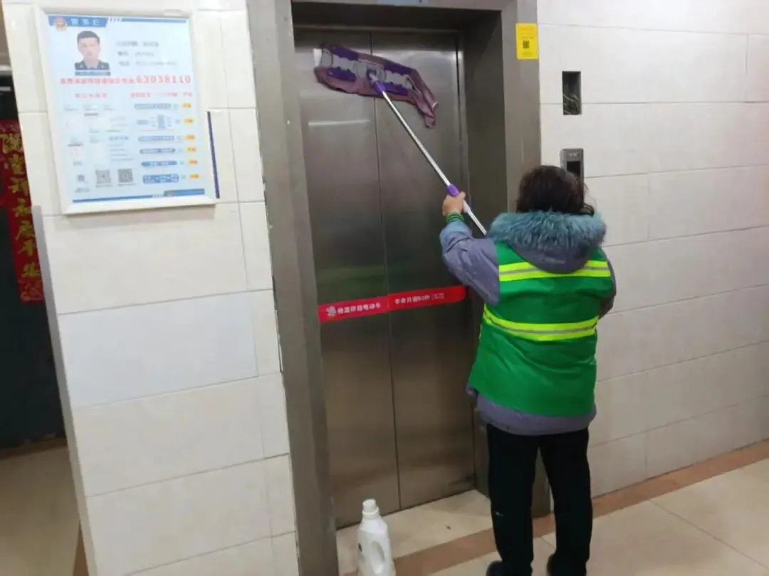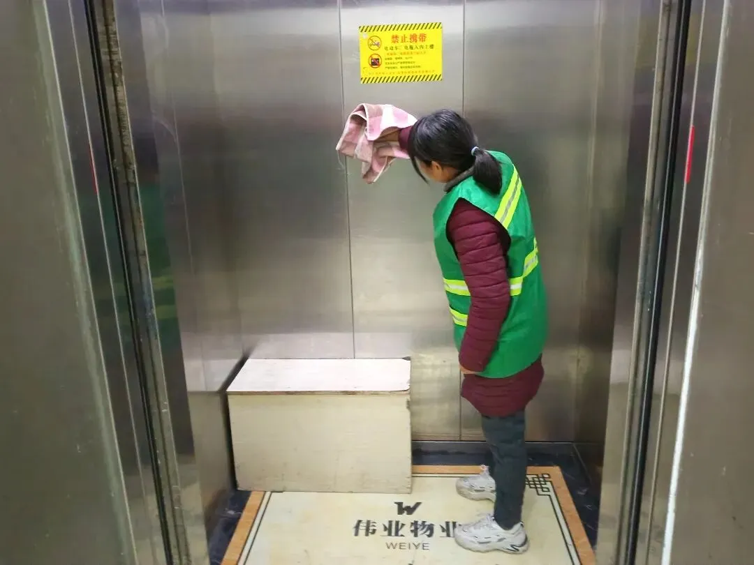 ▲打扫电梯轿厢卫生