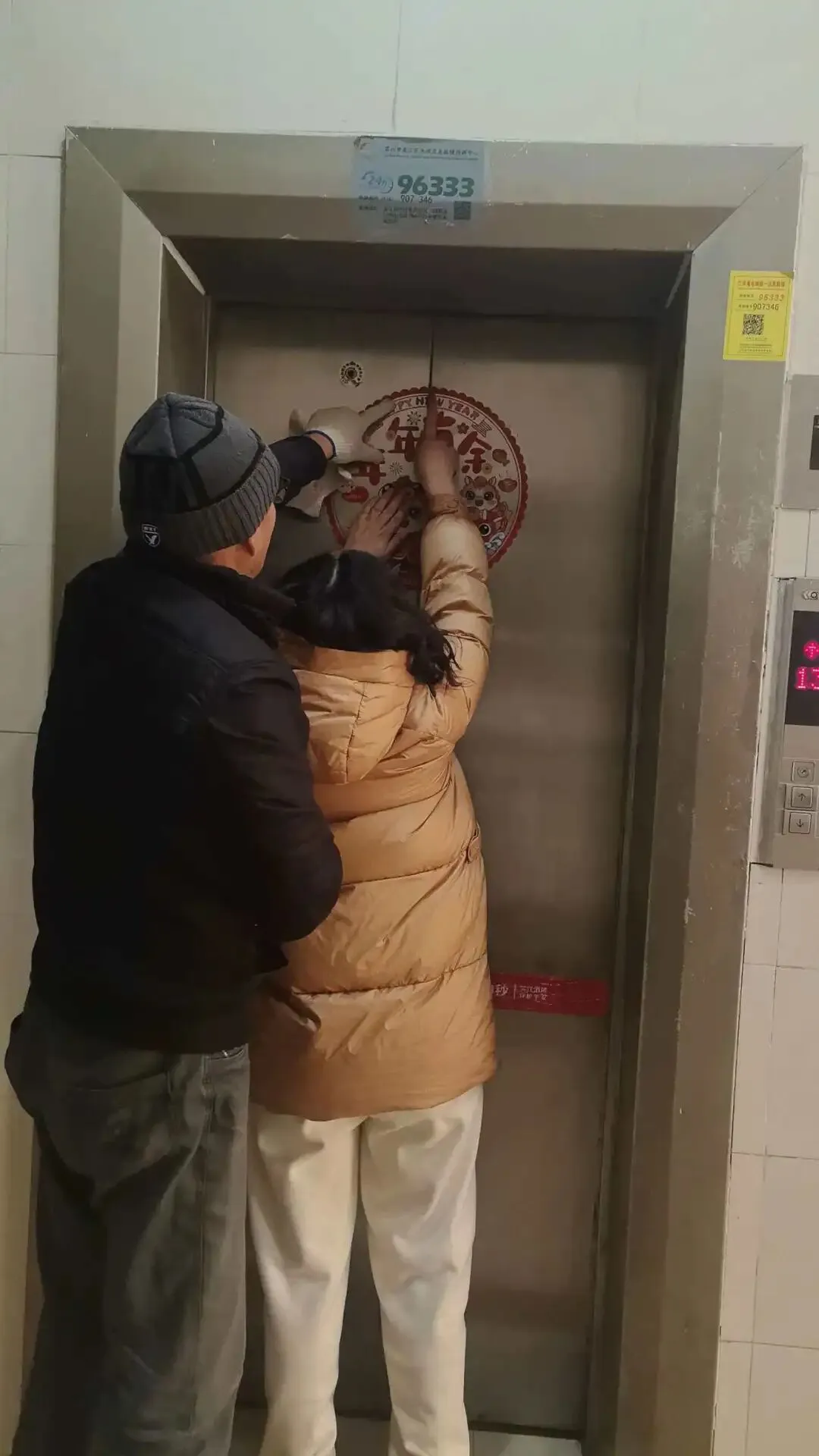 ▲电梯门福字张贴