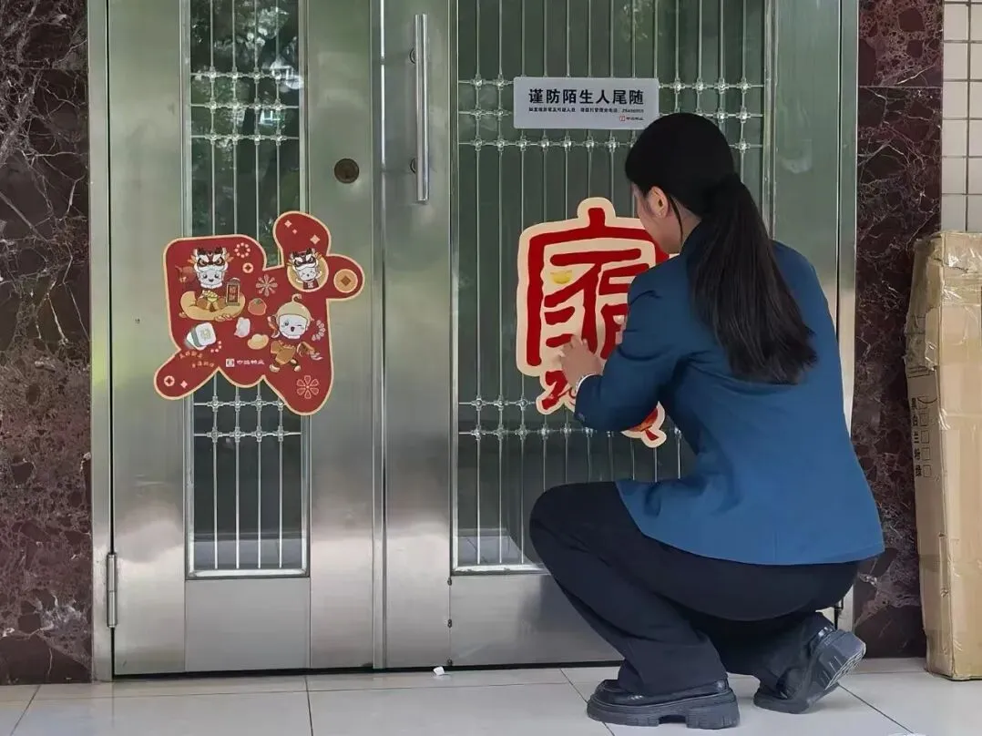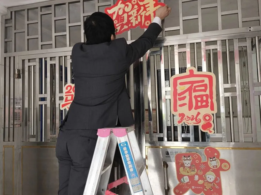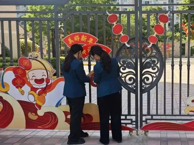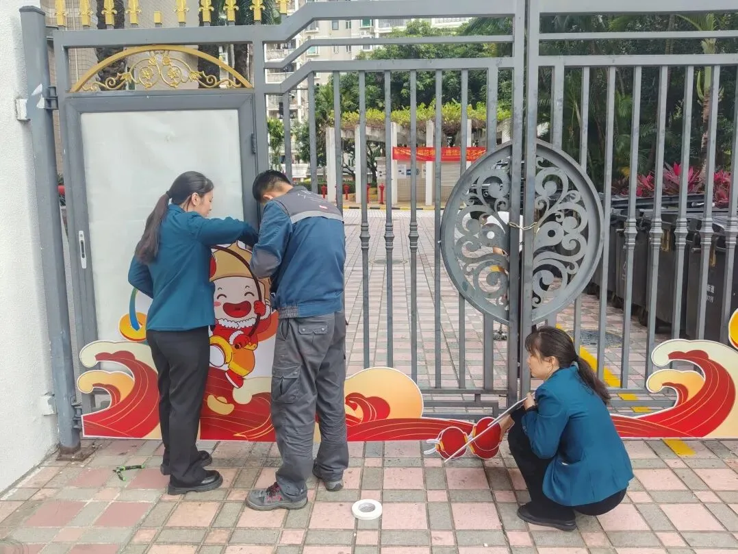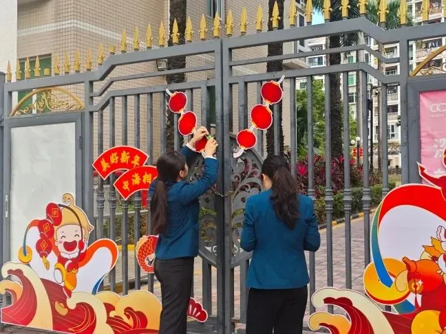 装点大堂大门,营造浓厚新春氛围,喜迎业主归家过年。