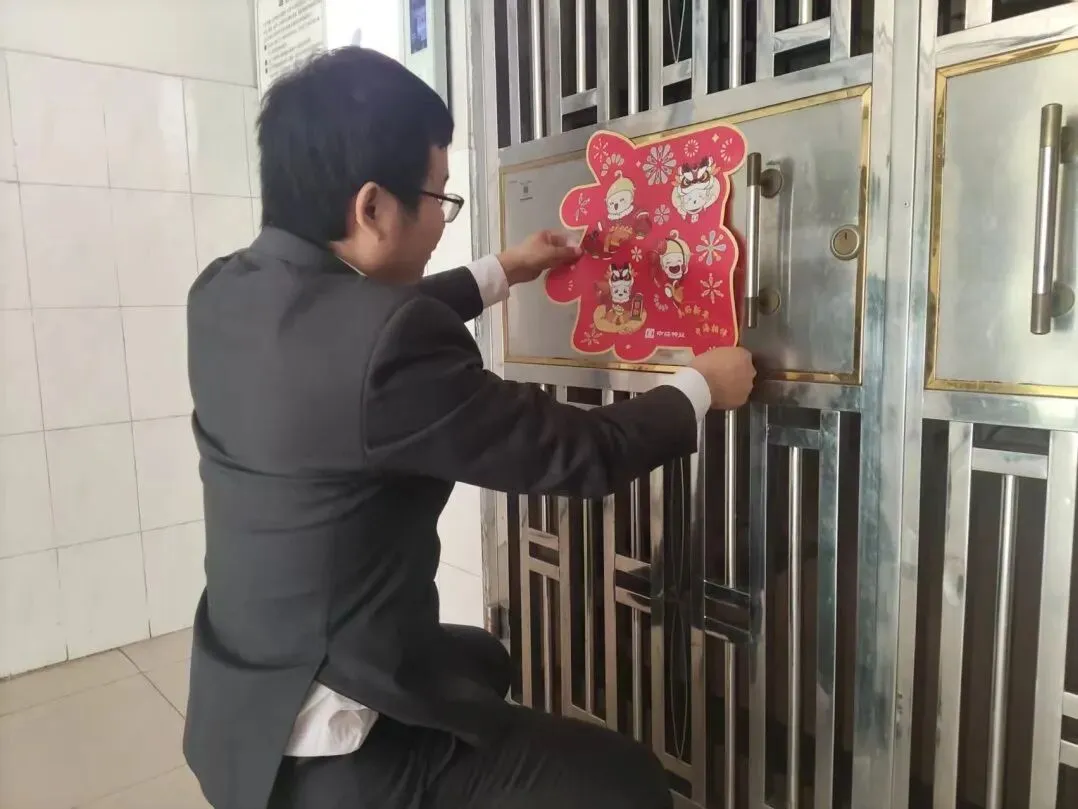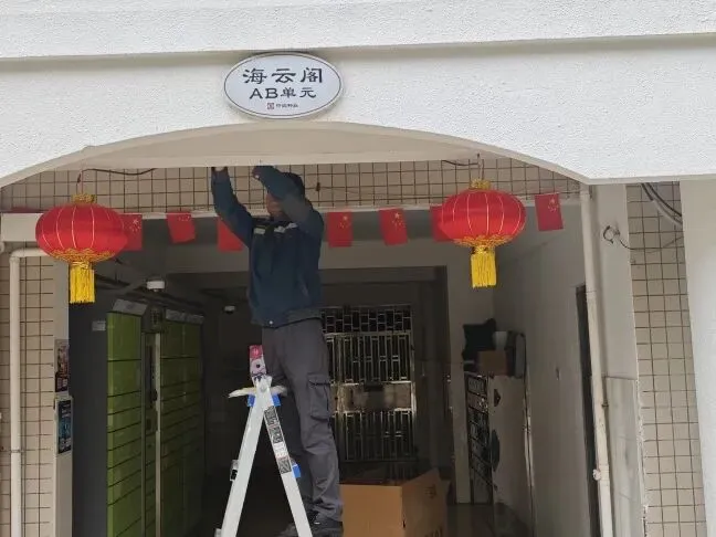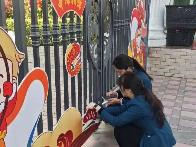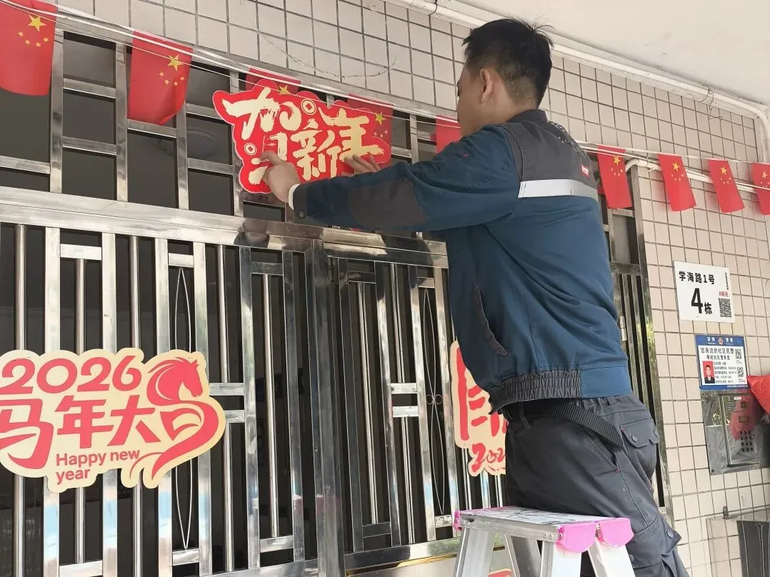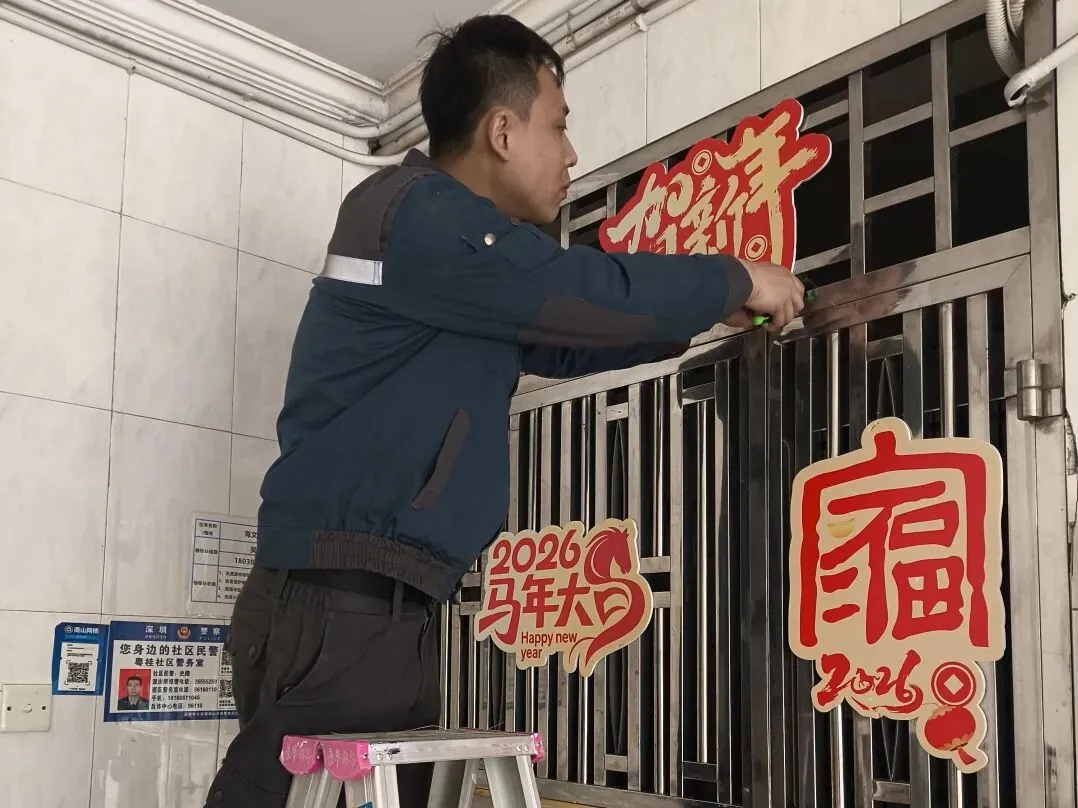 装点大堂大门,营造浓厚新春氛围,喜迎业主归家过年。