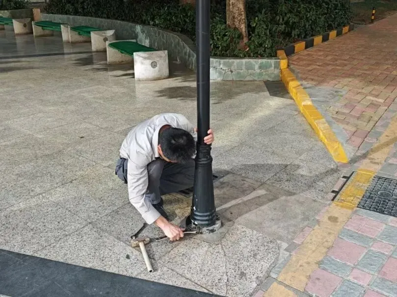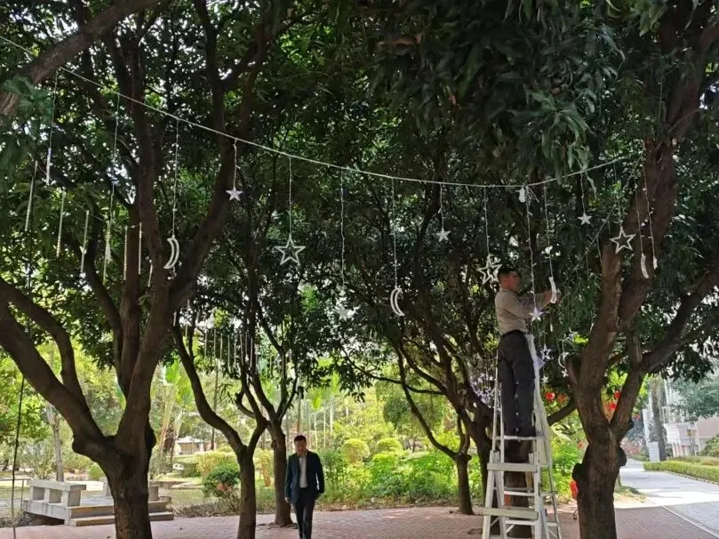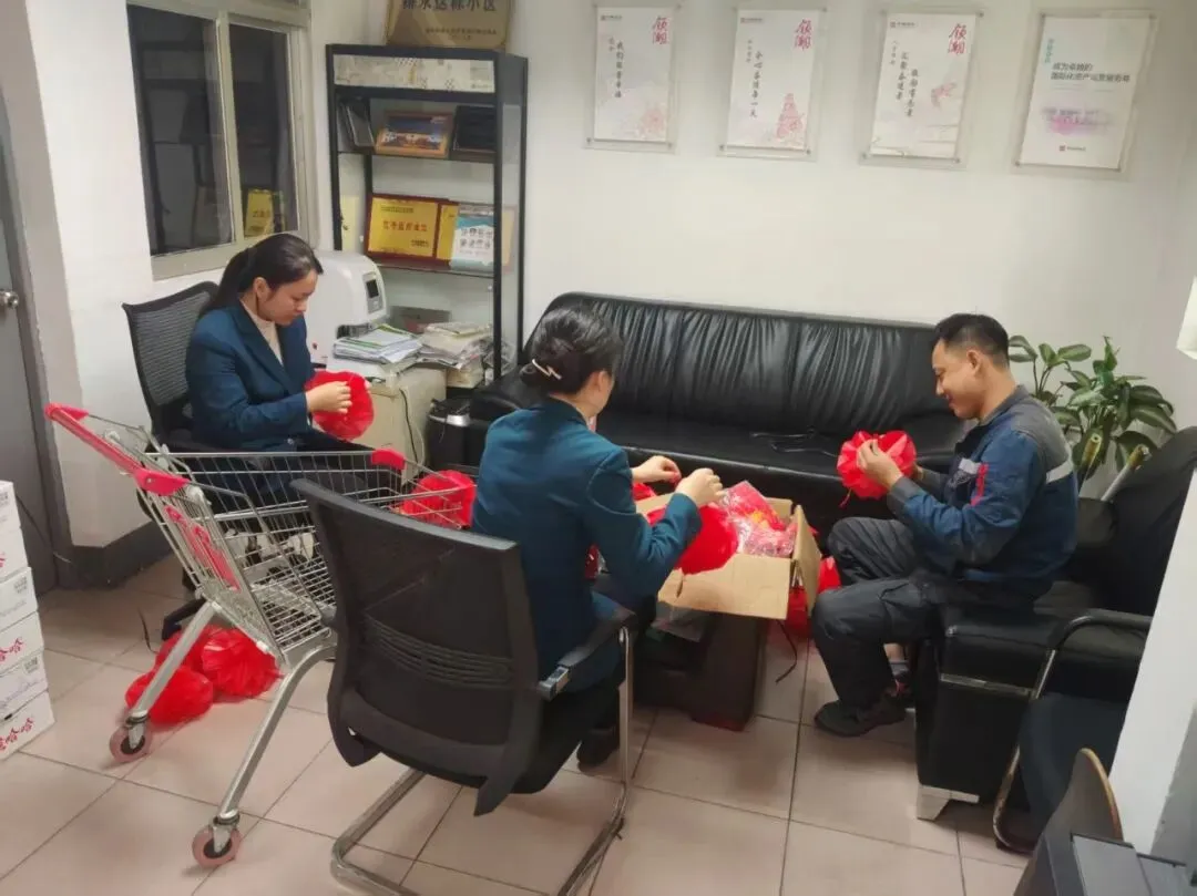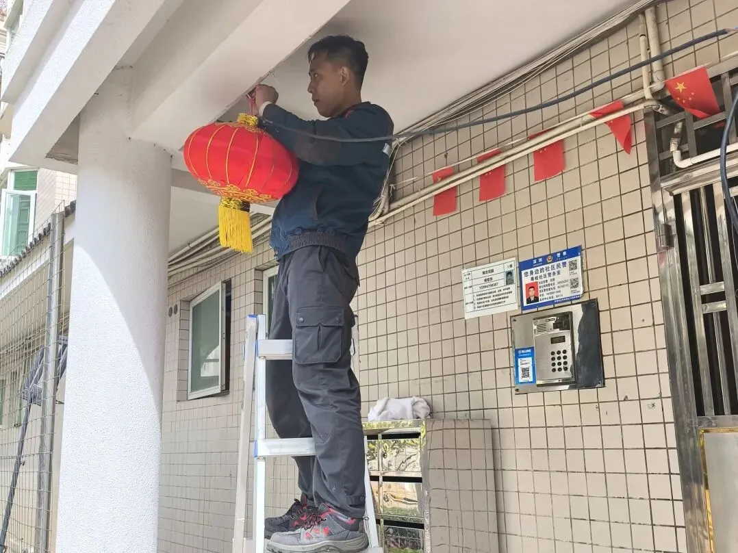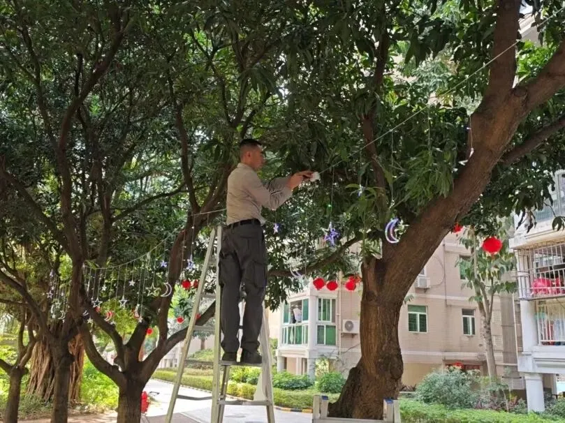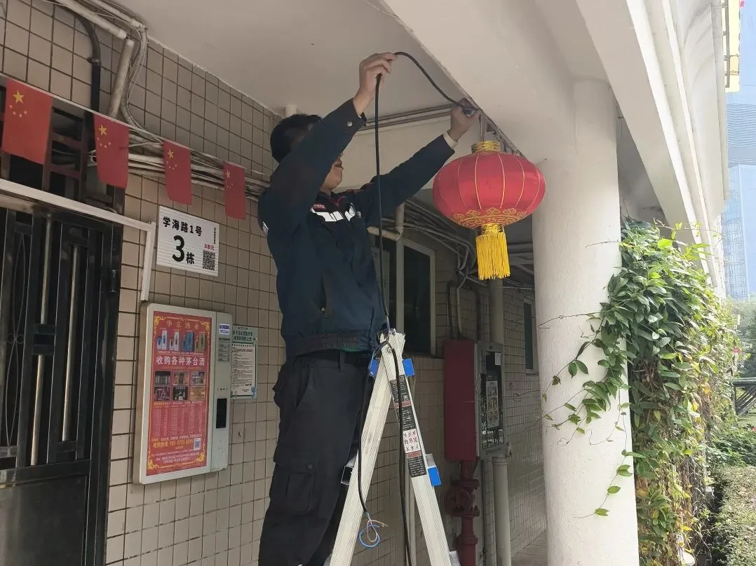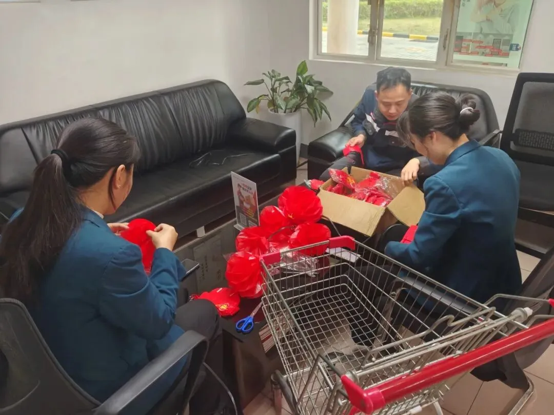 营造喜庆祥和的新春氛围,进行节日彩灯悬挂、线路规划等布置工作。