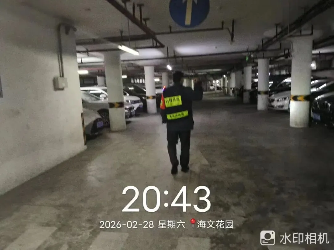 每日落实地库巡查,及时发现业主未关车灯、未关车门、地库照明灯管损坏等问题,为业主营造安全、有序的停车环境。