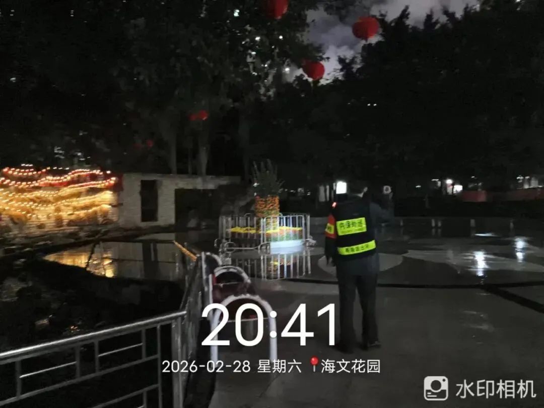 重点巡查小区内是否有违规燃放烟花爆竹、存在消防隐患等情况,及时提醒劝阻,保障小区安全。