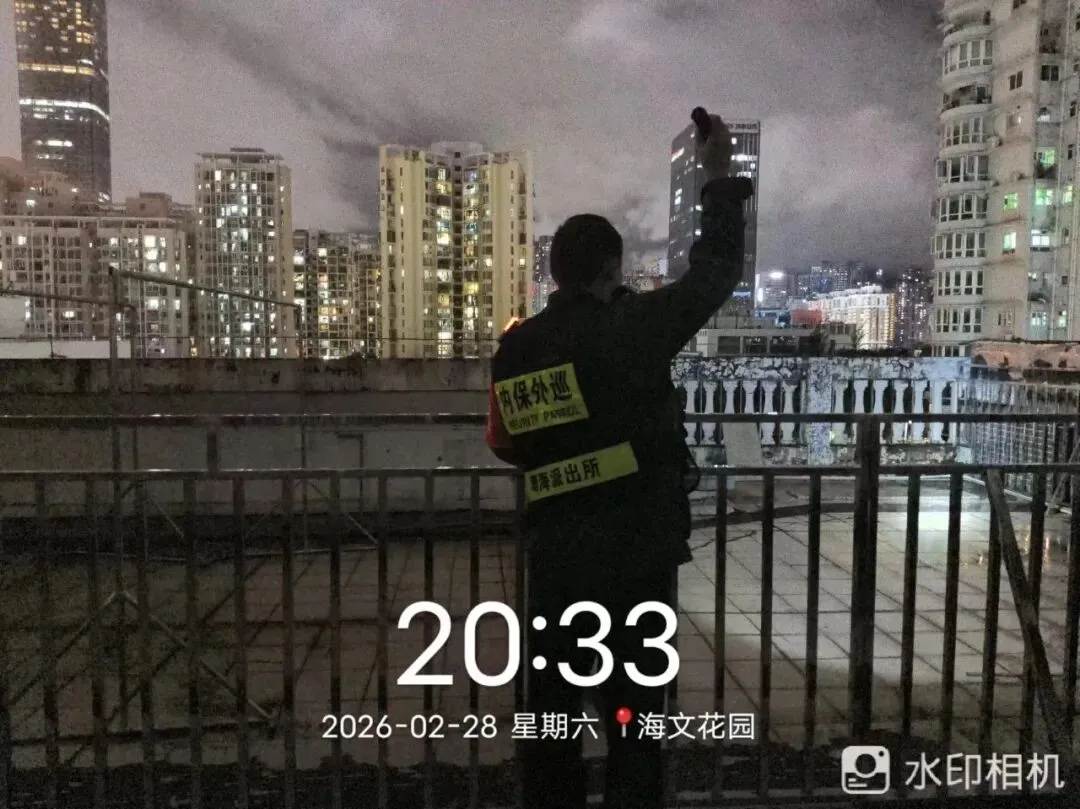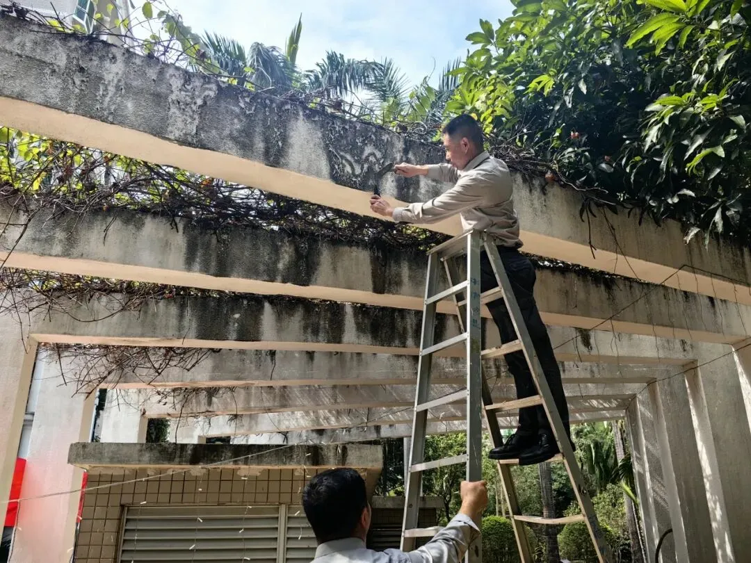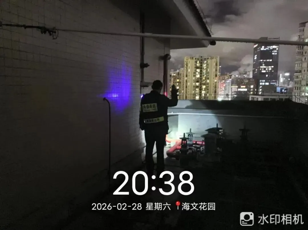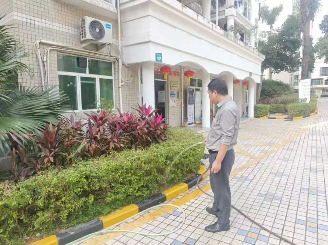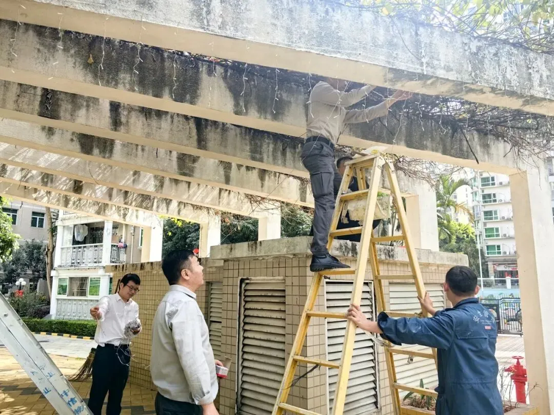 排查安全隐患,重点检查小区消防、用电、天台、地库、通道等重点区域,发现问题及时整改,保障节日期间小区安全稳定。