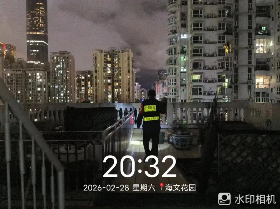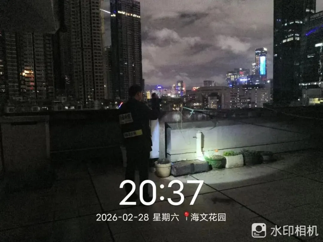 对天台区域开展全面巡查,重点排查业主有无遗漏晾晒物品、排水口堵塞、高空坠物隐患等情况,及时消除安全风险。
