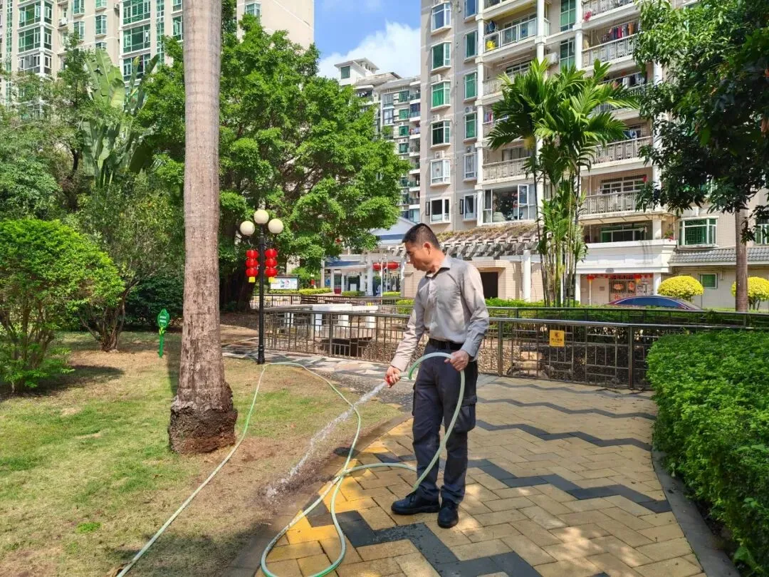 清洁园区公共区域环境,营造整洁舒适、干净有序的小区居住氛围。
