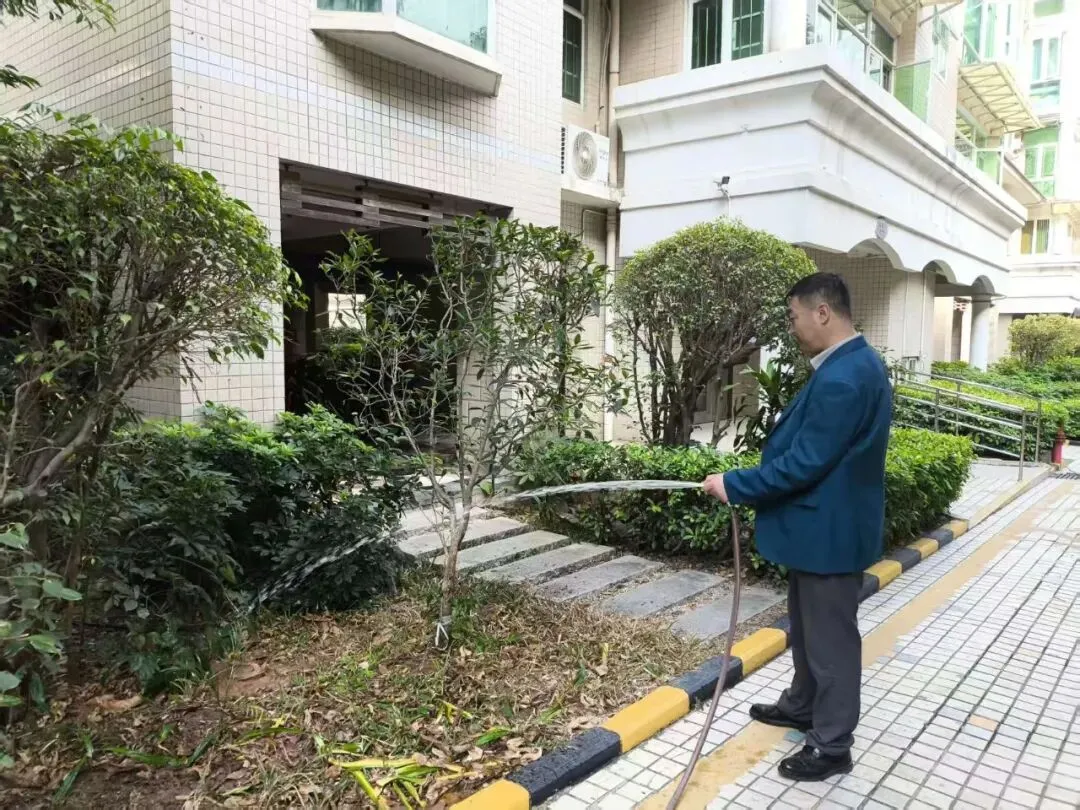 因冬季天气干燥少雨,加大小区绿植浇水频次,做好日常养护,保障小区绿化长势。