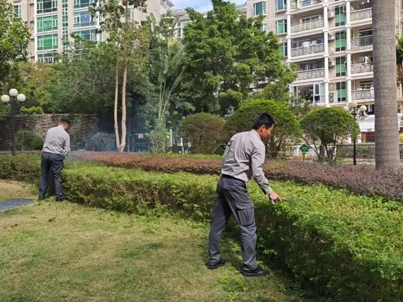 为迎接新年,对小区绿植进行修剪养护,美化园区环境,营造整洁舒适的居住氛围。