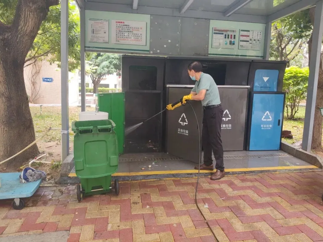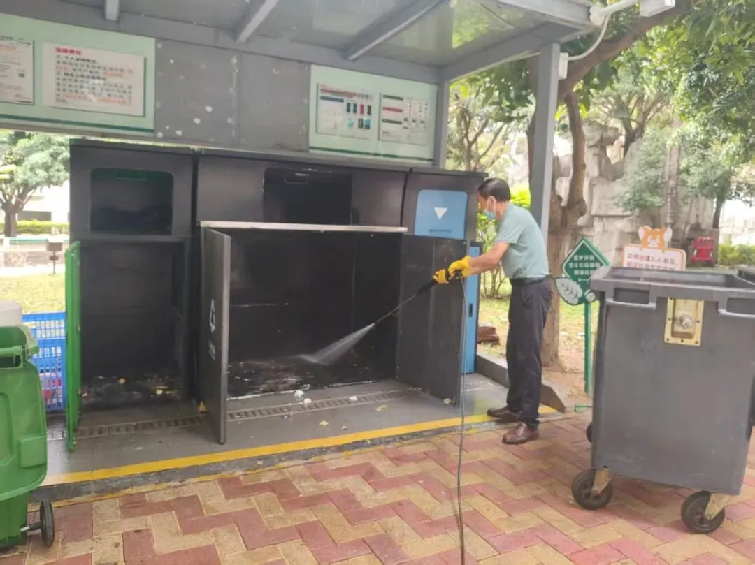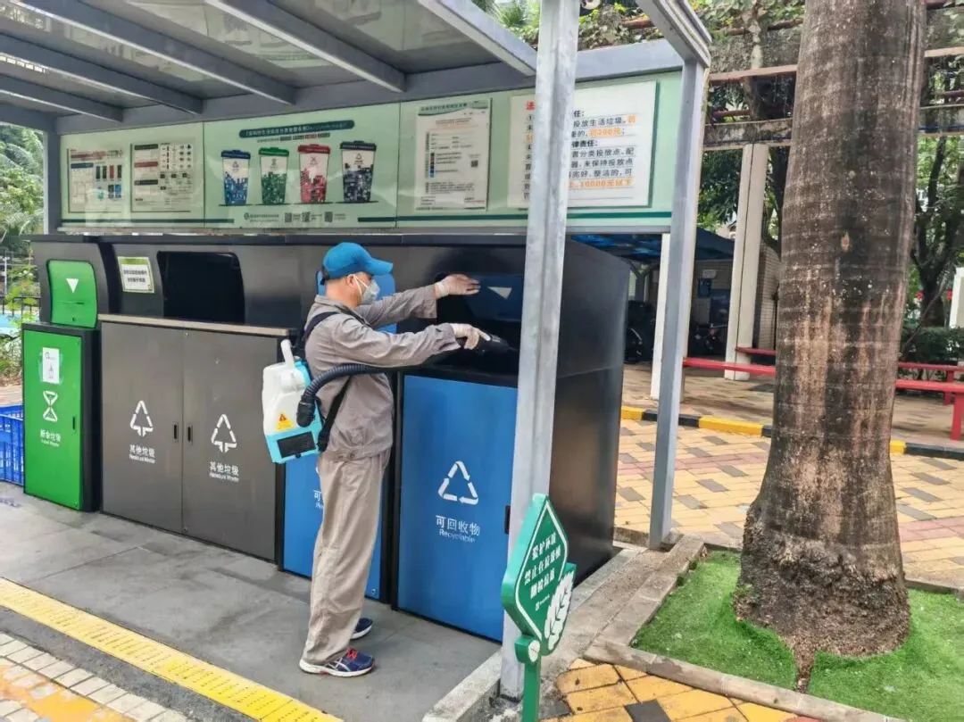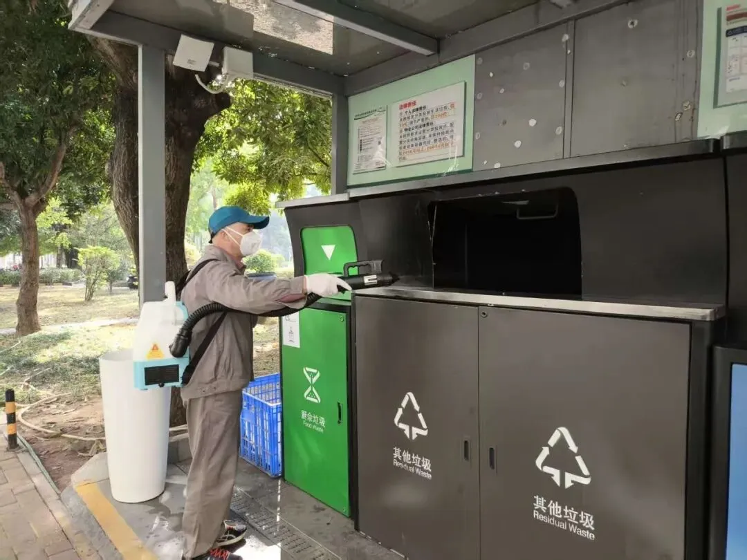 对小区垃圾分类点进行每日消毒消杀,抑制细菌滋生、消除异味,保障居民生活环境的卫生与健康。