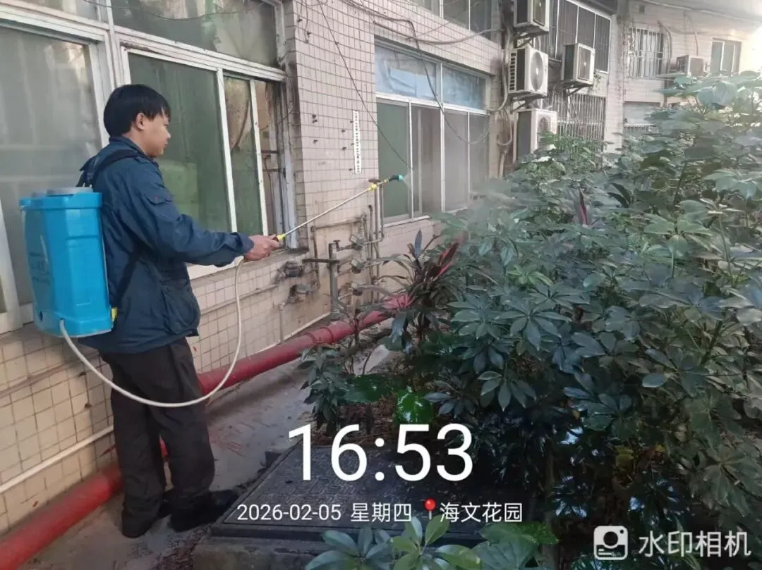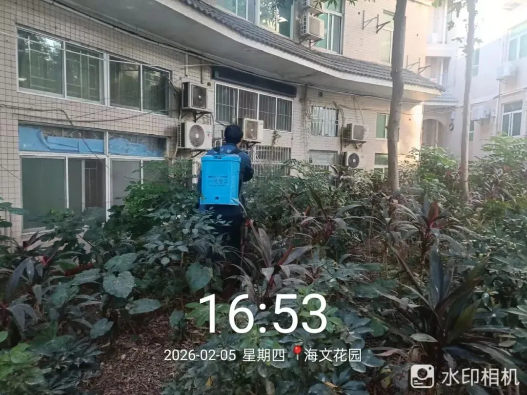 开展园区四害消杀作业,降低蚊虫密度,防范虫害传播,保障园区居住环境整洁与业主身体健康。