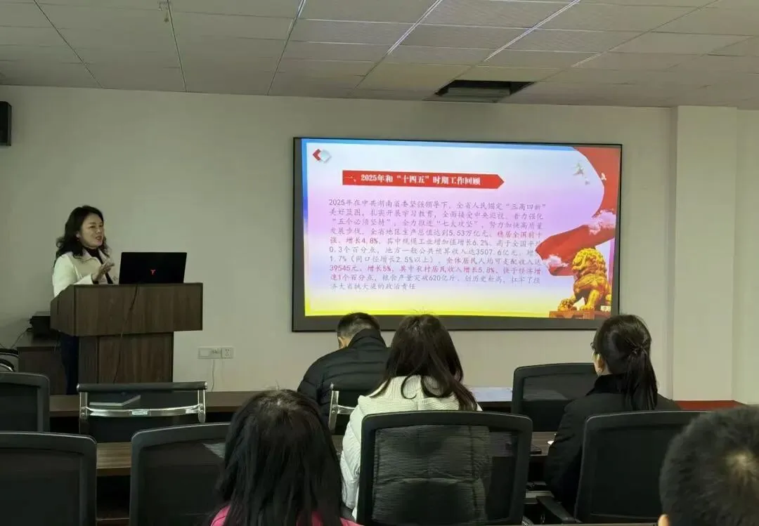 刘国秀领学了2026年湖南省政府工作报告的核心内容,重点解读了报告中关于先进制造业、科技创新、产业发展、安全生产等方面的部署与要求。