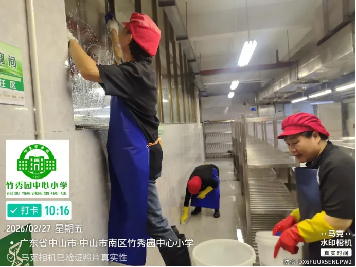 1.食堂全体员工对各个区域进行了彻底清洁,确保焕然一新: