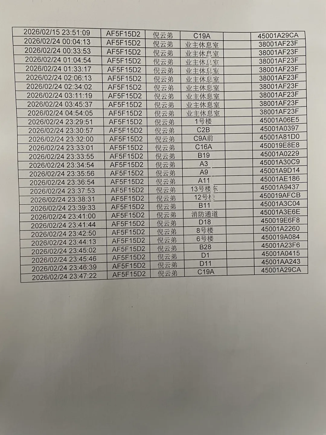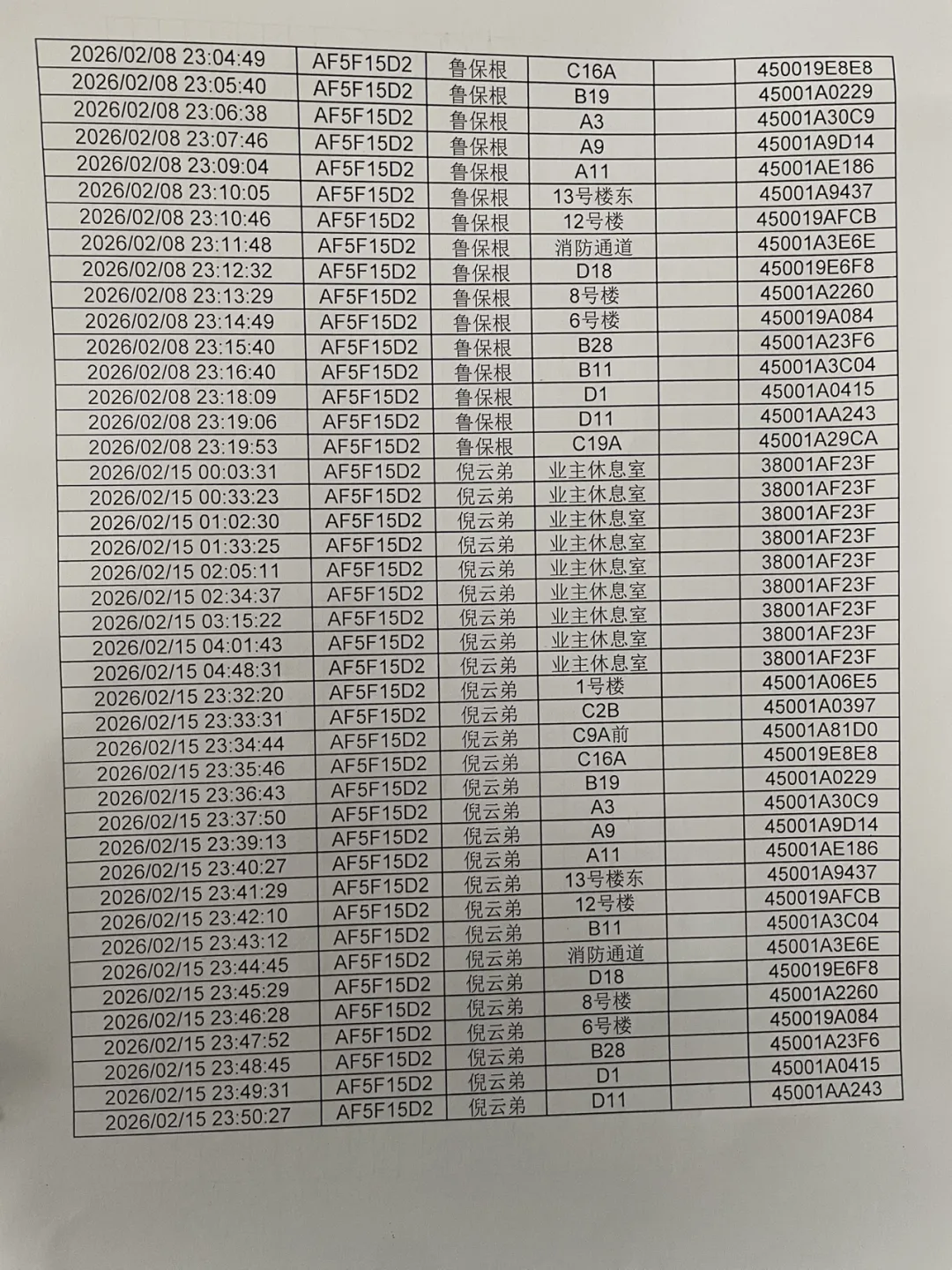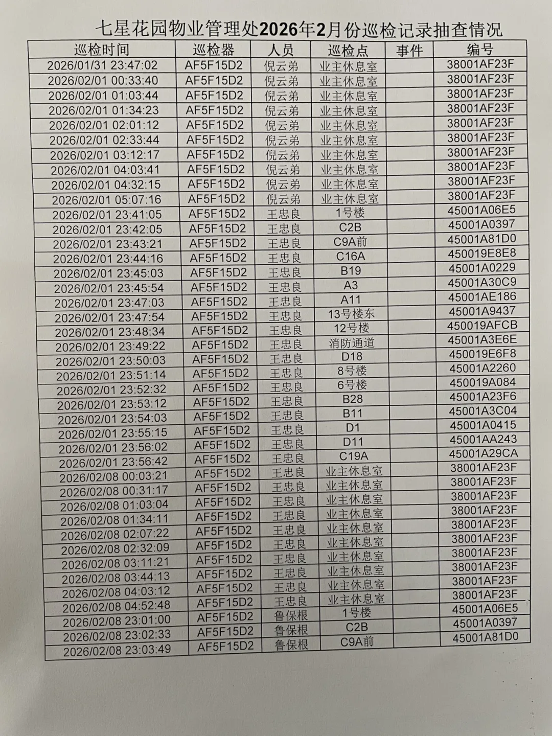 七星花园物业管理处2026年2月份保安夜间巡更抽查情况