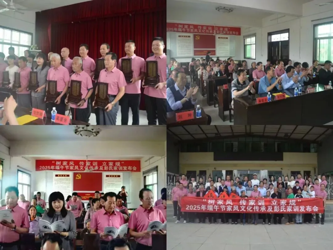 十二、2025年5月31日,我们在景村镇景村街社区举办“树家风,传家训,立家规”一一2025年端午节家风文化传承暨《家族文化与洛南彭氏家谱家训》新书发布会。
