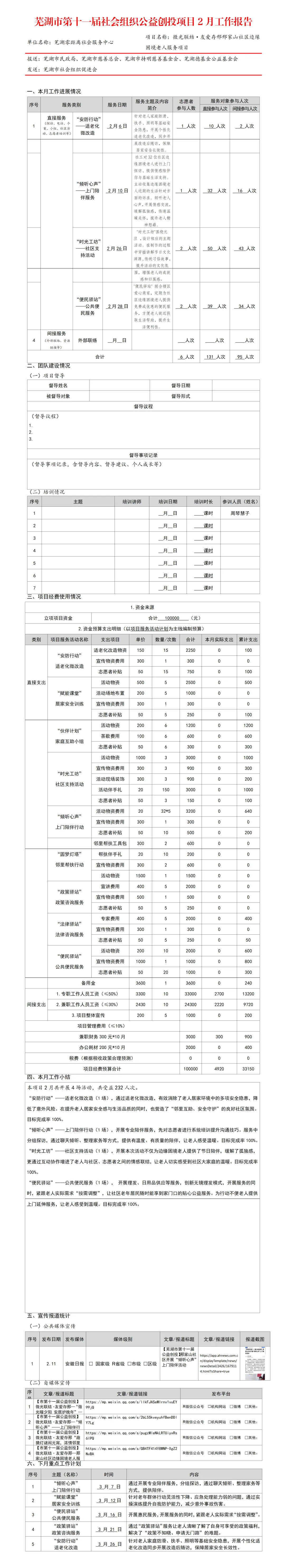 芜湖市第十一届社会组织公益创投项目2月工作报告【2026年第65期总第3740期】