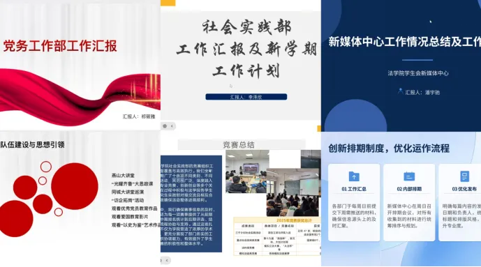 在肯定成绩的同时,各部门汇报人也指出工作中存在的问题,如部门间沟通效率有待提升、部分工作缺乏长远规划、社团管理需进一步规范、学生干部学业与工作的平衡需持续优化等,体现出学生会直面问题、持续改进的积极态度。