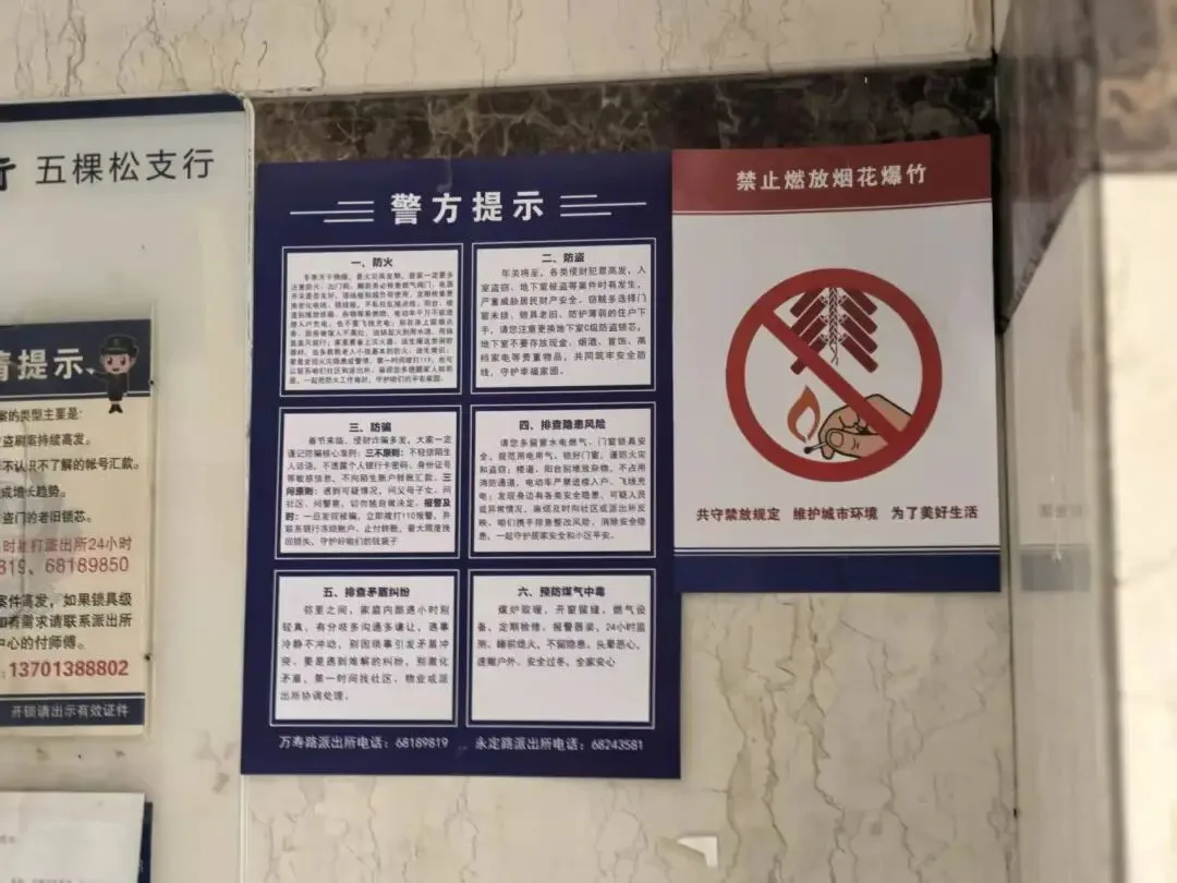 4.按照属地管片民警工作部署在各单元楼张贴烟花爆竹禁放提示,强化节日安全宣传。