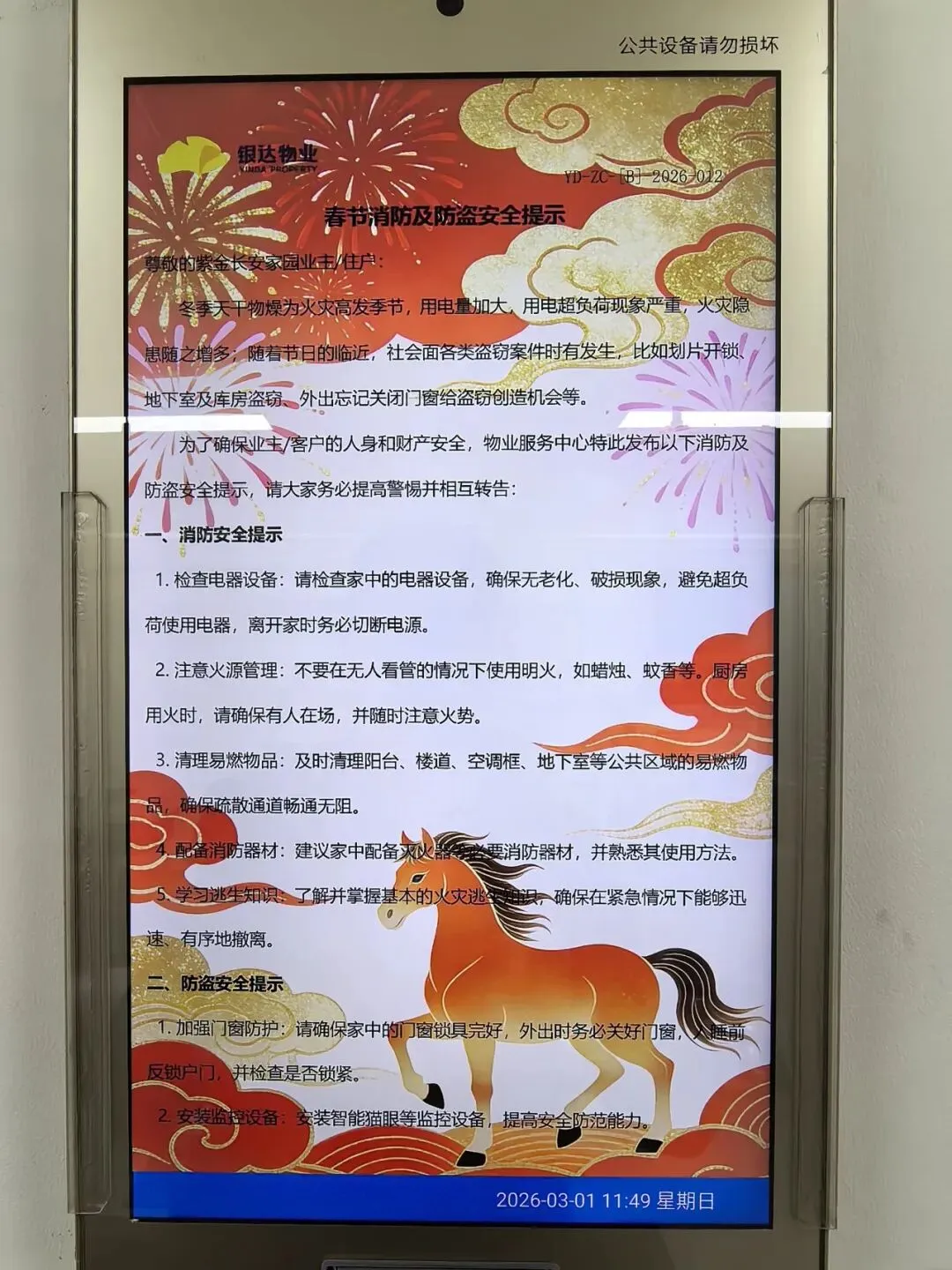 3.春节前提示业主做好防火防盗,平安过节,发布《消防及防盗安全提示》。