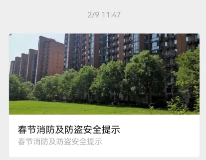 6.通过项目公众号、业主微信群、电梯传媒显示屏等渠道,多平台向业主推送节日安全提示。