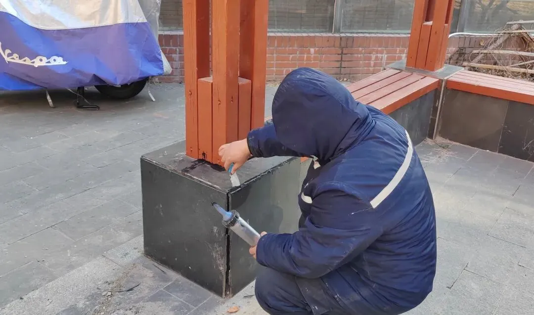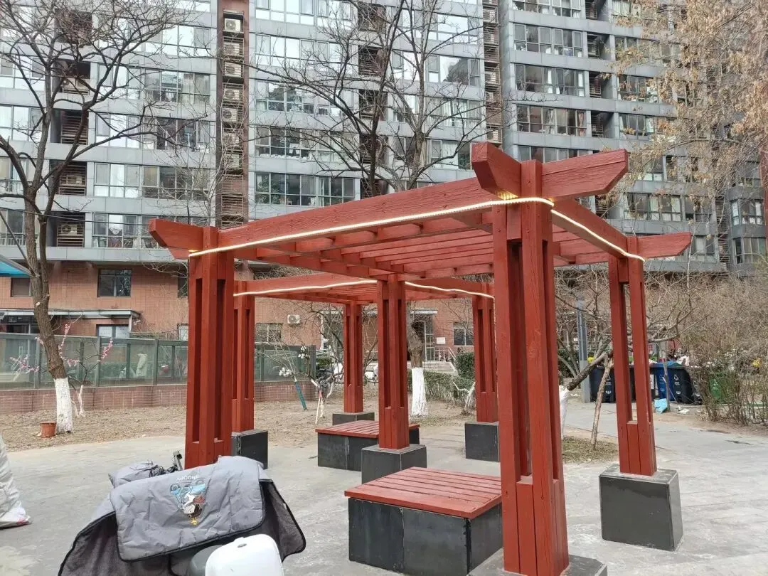 2.三期小广场凉亭安装节日装饰灯带,对破损大理石进行修复处理已完成。