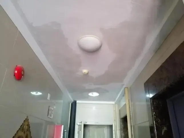 2.3-1-12层电梯厅吊顶脱落,恢复吊顶补腻子刷漆修缮已完成。