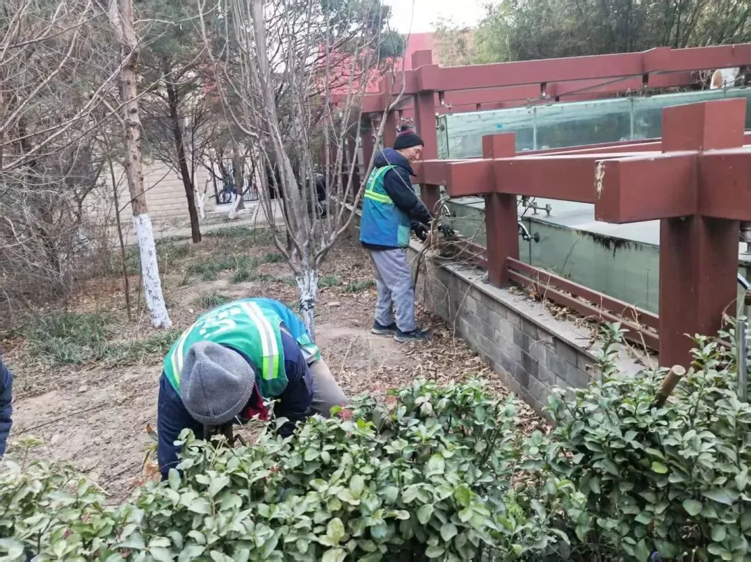 二月份重点开展园区早春绿化养护工作,对小区绿植进行全面巡查,及时清理枯枝落叶、杂草杂物,保持绿化区域整洁美观。