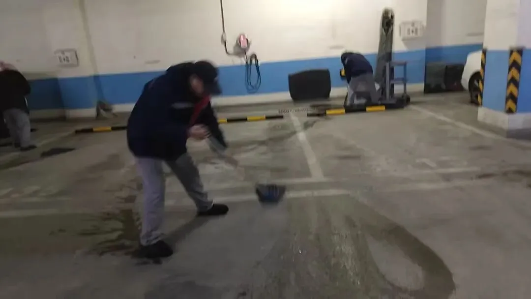 对地下车库地面进行清理。