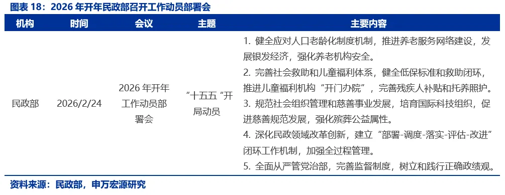民政部2月24日召开直属机关全体党员干部会议,对做好2026年工作进行动员部署。会议总结2025年及“十四五”工作成效,强调2026年要以编制实施“十五五”民政规划为牵引,对标党中央部署要求,在养老服务、社会救助、儿童福利、残疾人保障、社会组织管理、慈善事业、殡葬服务等重点领域开新局。会议提出要以更加科学的工作方法和更加优良的工作作风,建立“部署—调度—落实—评估—改进”闭环机制,强化政治意识、责任意识、效率意识、务实意识,以高质量党建引领民政工作高质量发展。