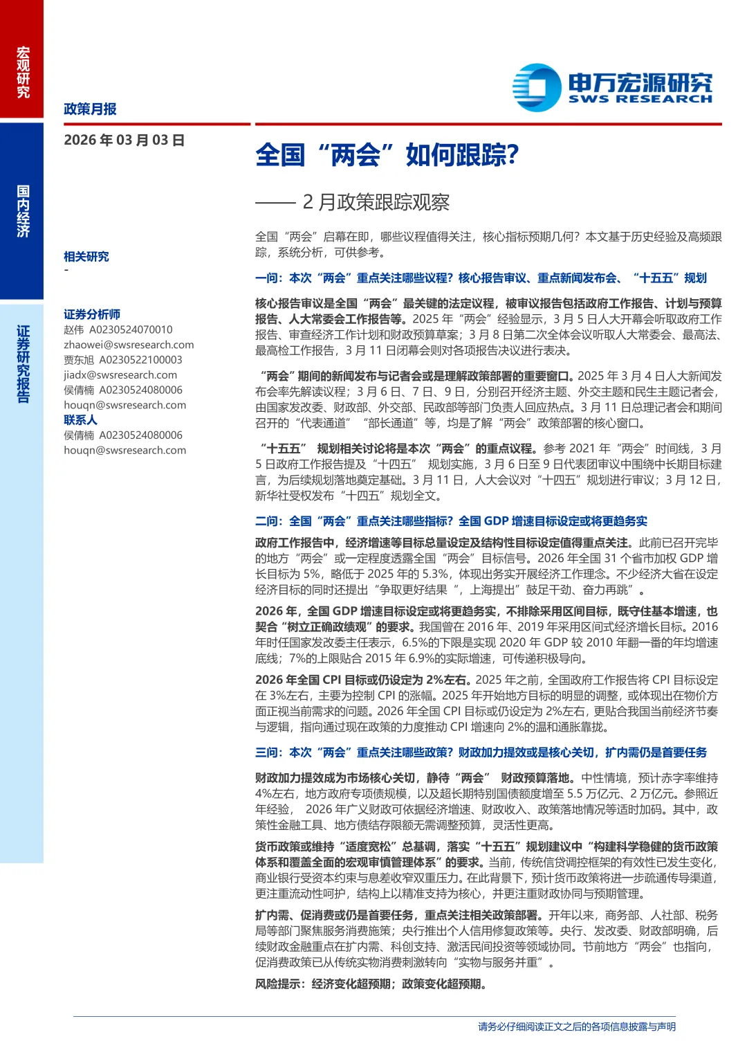 《全国“两会”如何跟踪?——2月政策跟踪观察》