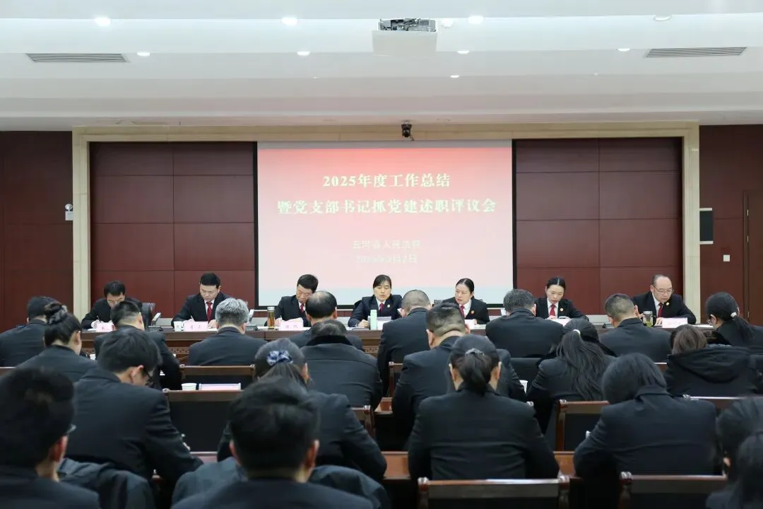 3月2日,五河法院召开2025年度工作总结暨党支部书记抓党建述职评议会,党组书记、院长潘伟荣主持会议并讲话,全院干警参加会议。