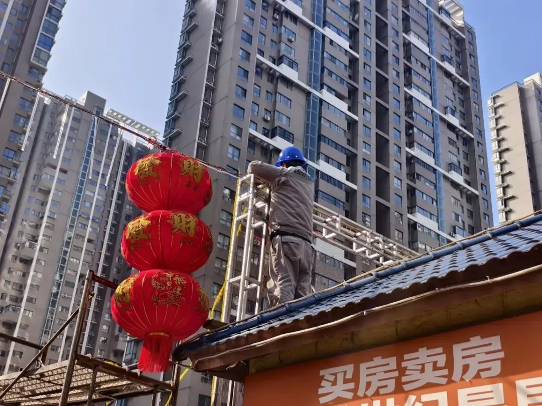 年味是从物业人员的点滴付出开始,小区出入口、园区绿化、楼栋大堂处处活跃着物业人员辛勤布置的身影,爬高梯、挂灯笼、装灯带、贴窗花只为把最好的祝福带给每一位业主。