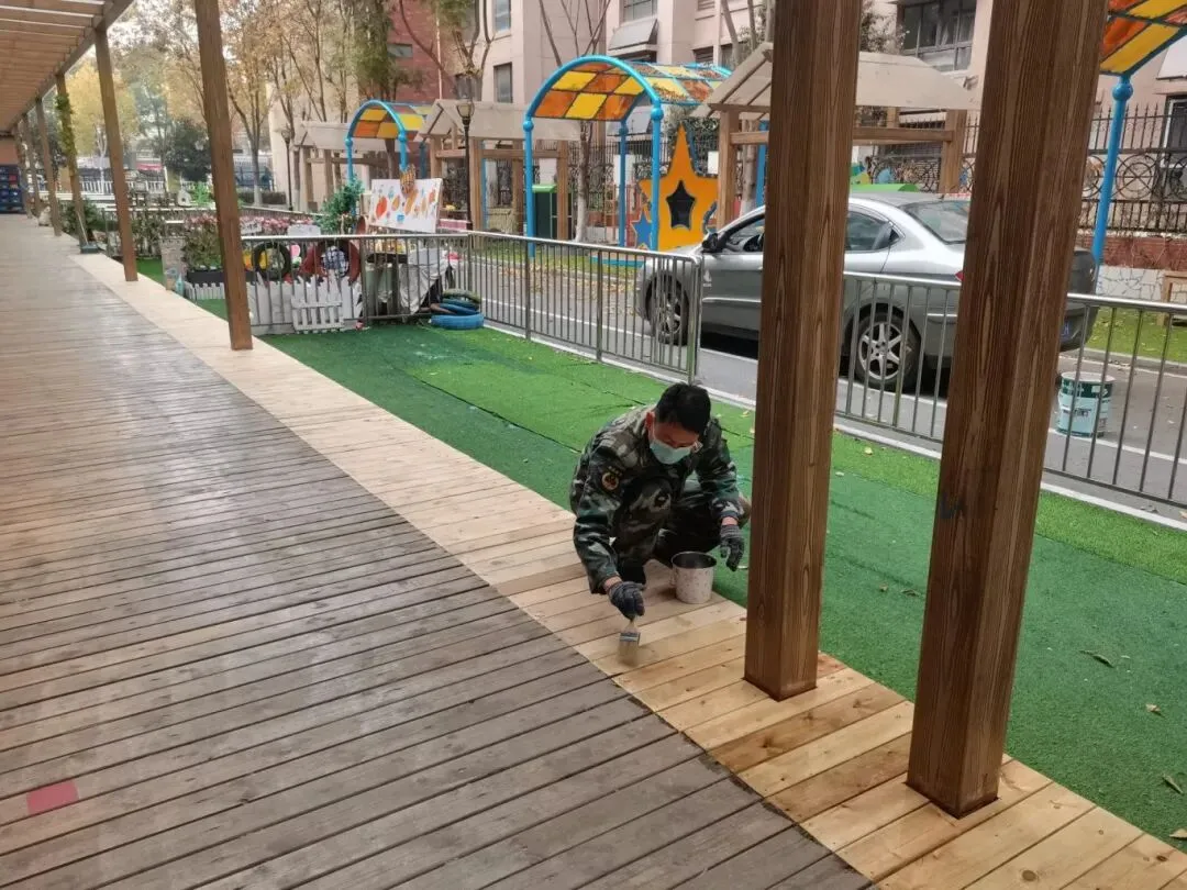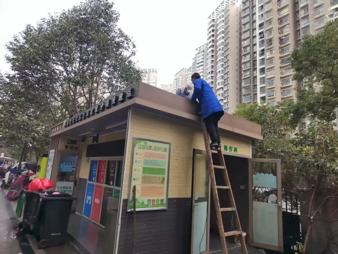 为保障垃圾站设施安全使用、提升小区环境品质,振徽苑对垃圾站房顶进行防水材料铺设施工,有效防止渗漏隐患,延长设施使用寿命。