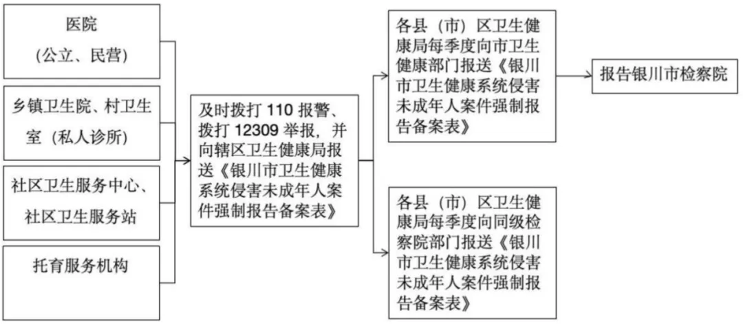 图1-2:银川市卫生健康系统侵害未成年人案件强制报告工作流程图⁵