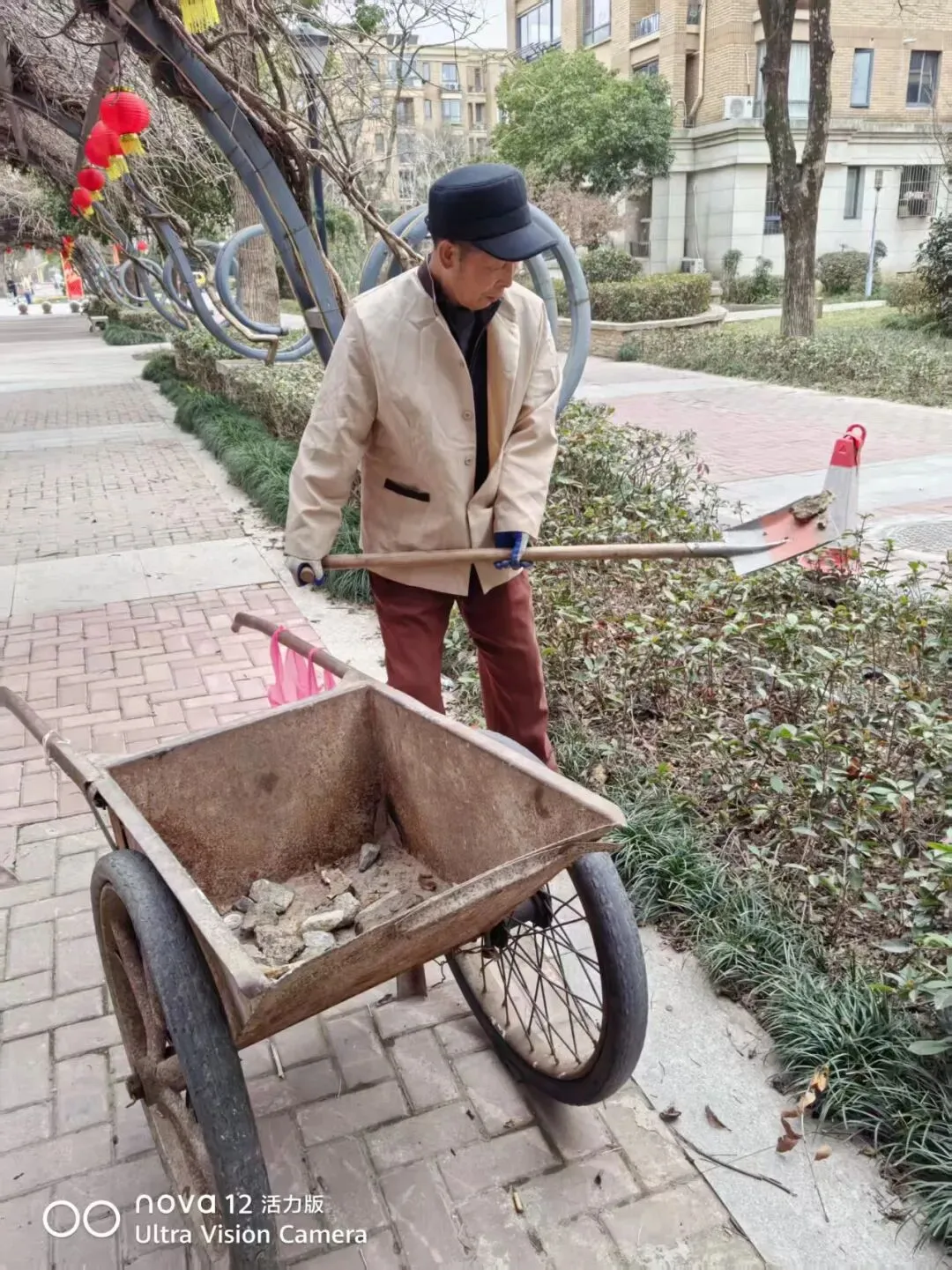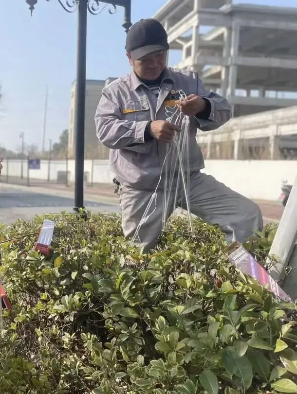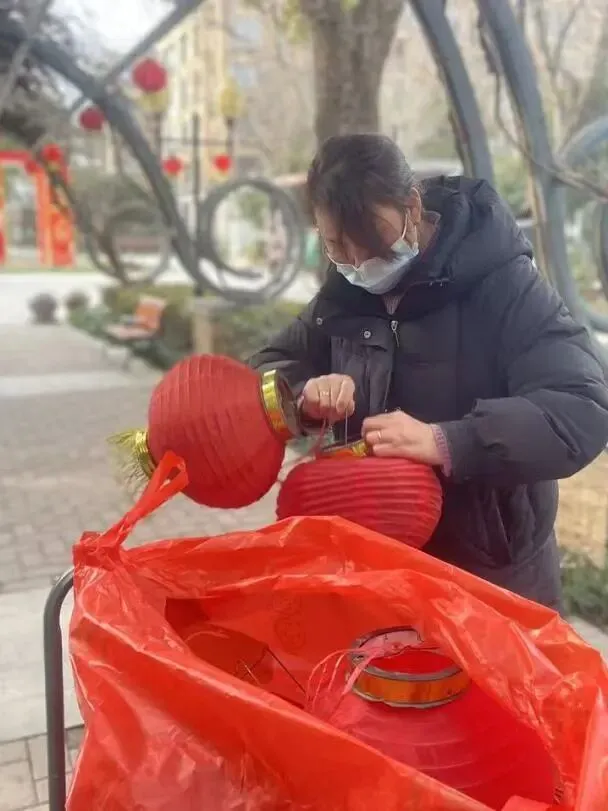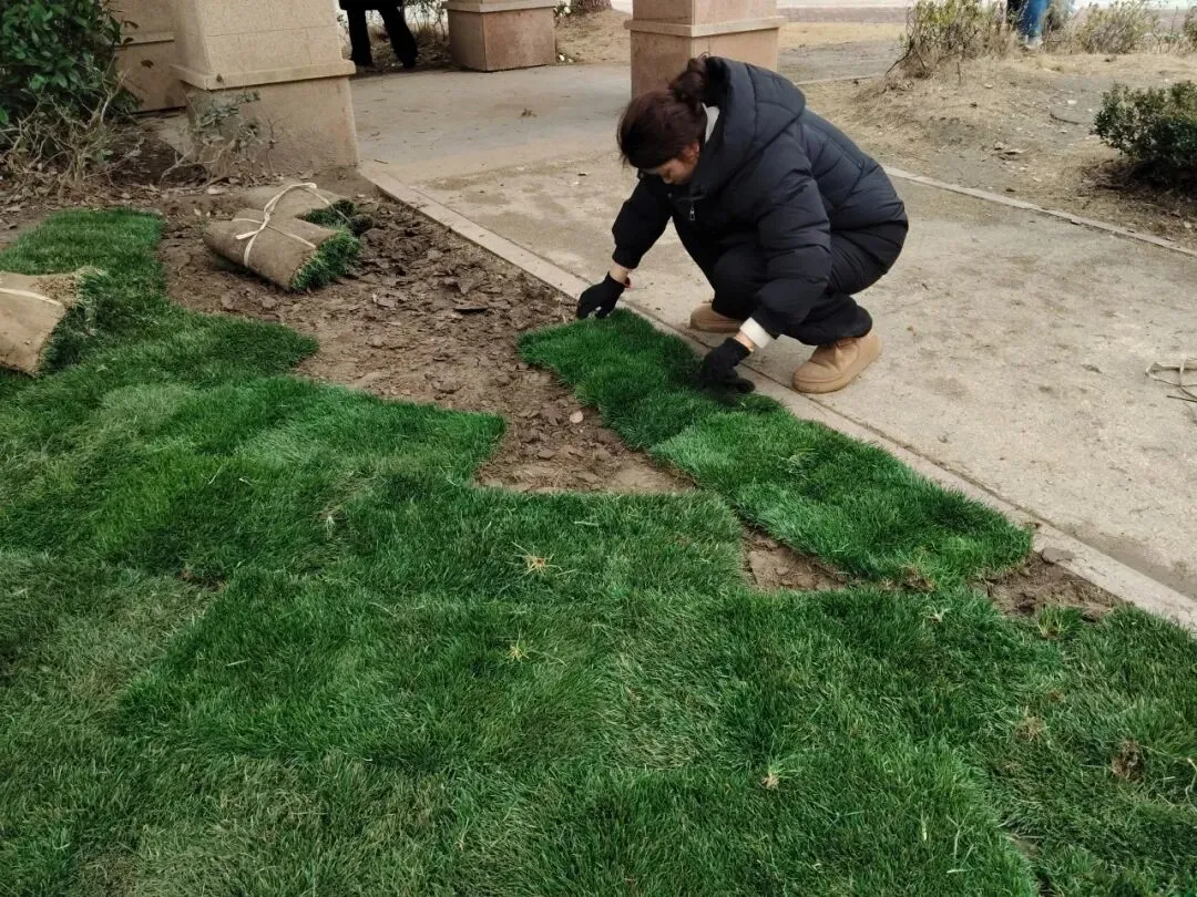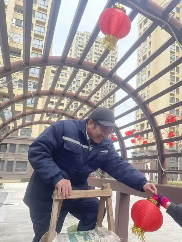 服务中心对欢乐广场荒芜的绿化区域进行翻土整理、铺设新草皮、种植花卉并搭配喜庆装饰,以此提升小区整体美观度与温馨感,打造更宜居的生活环境。