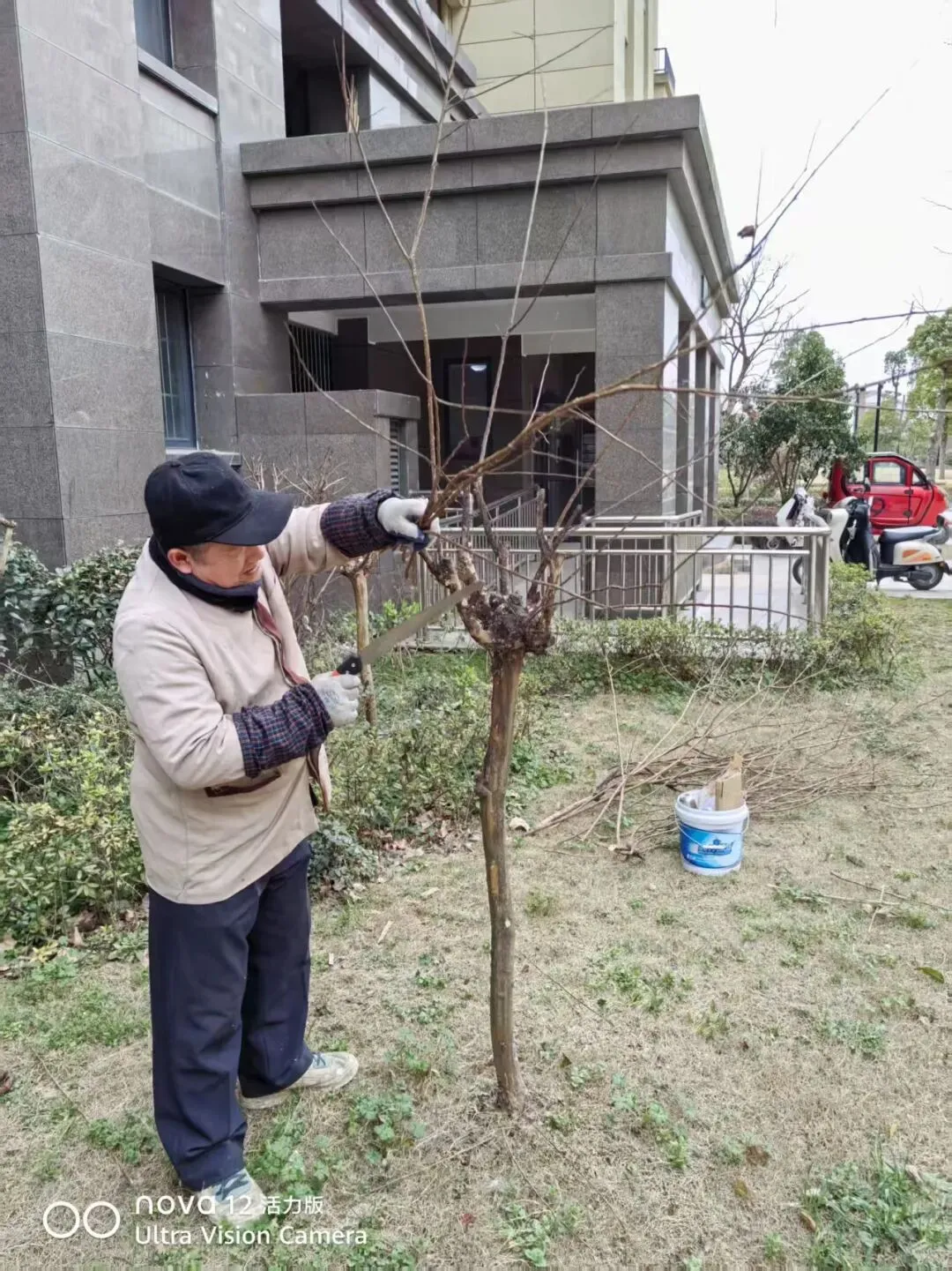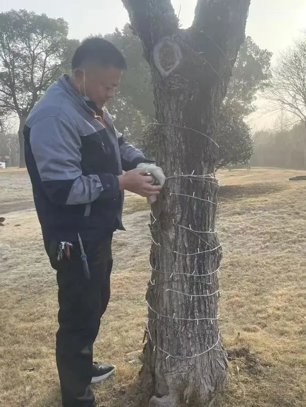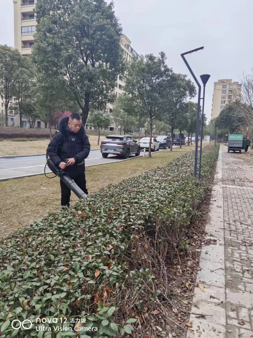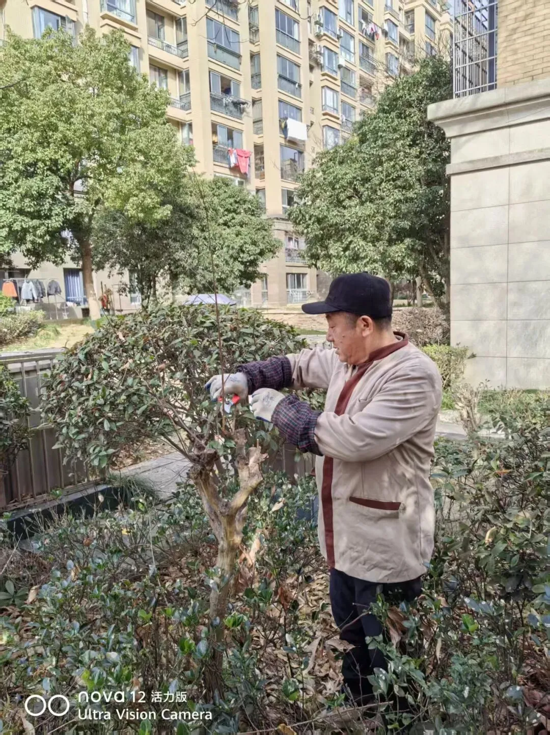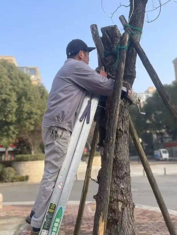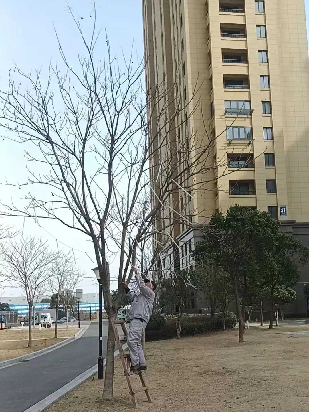 2、园区草地枯叶清理,部分乔木修剪;