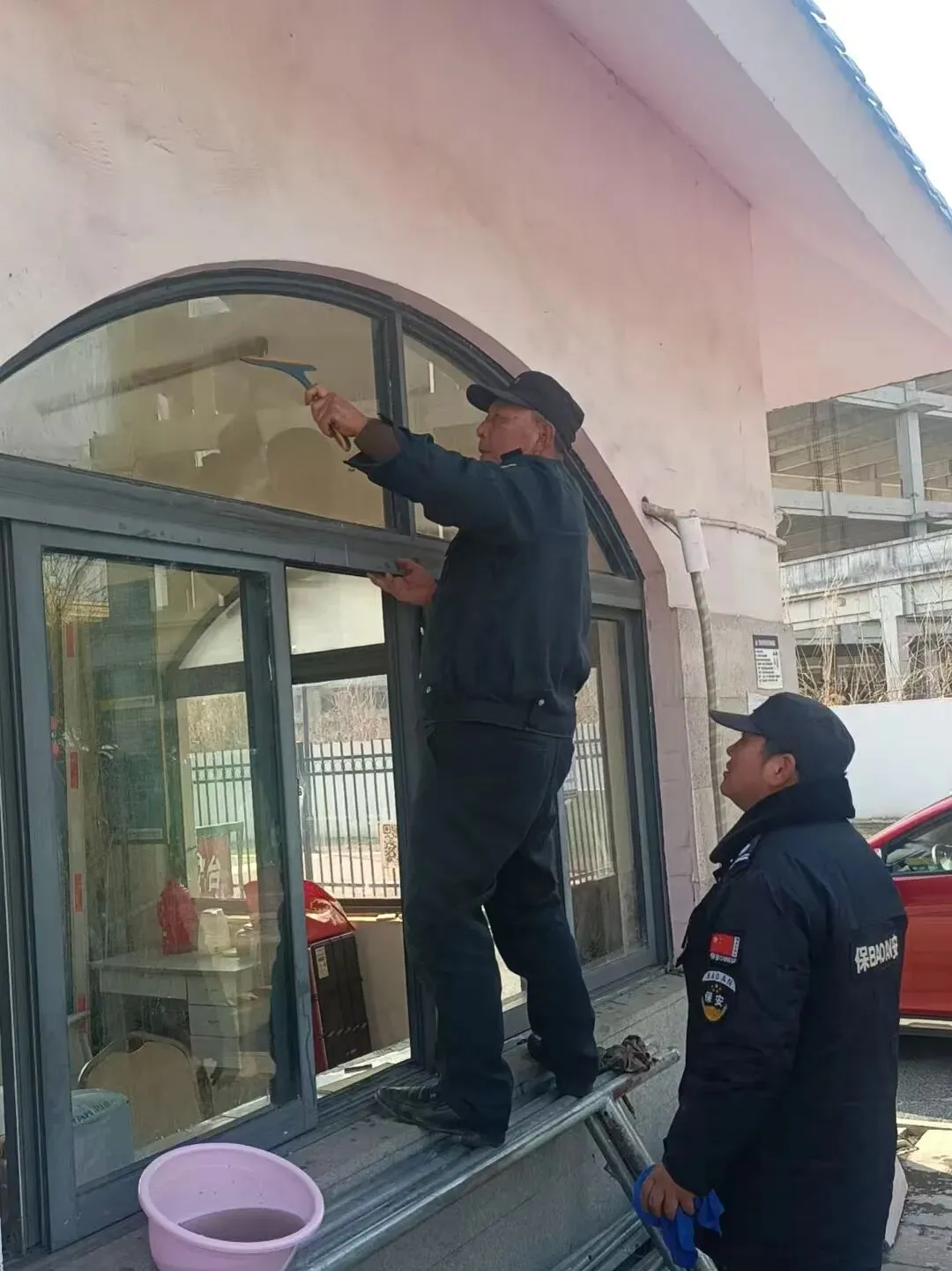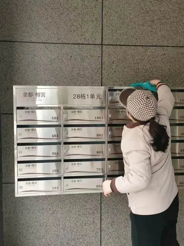 9、单元门玻璃门窗、标识牌、消防器材等擦拭;