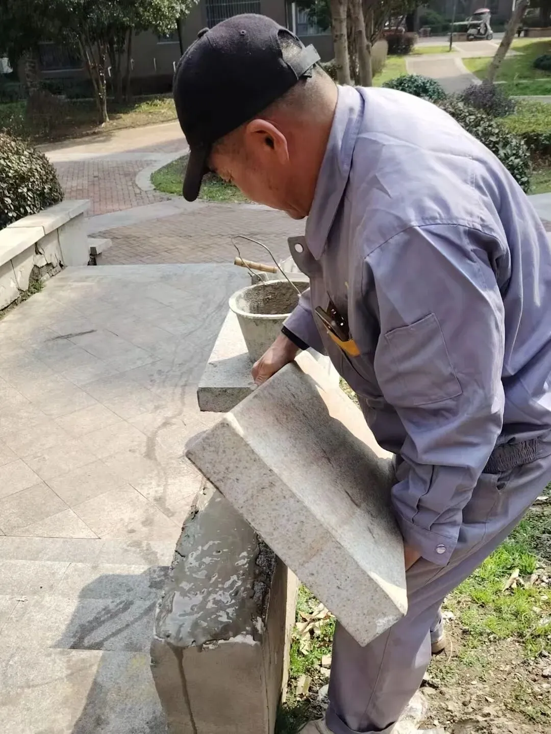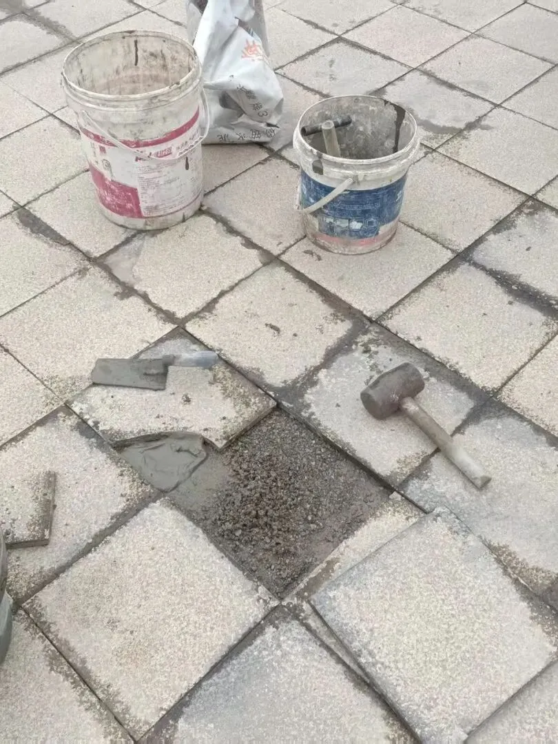 4、园区中心道路松动的大理石砖块加固维修;