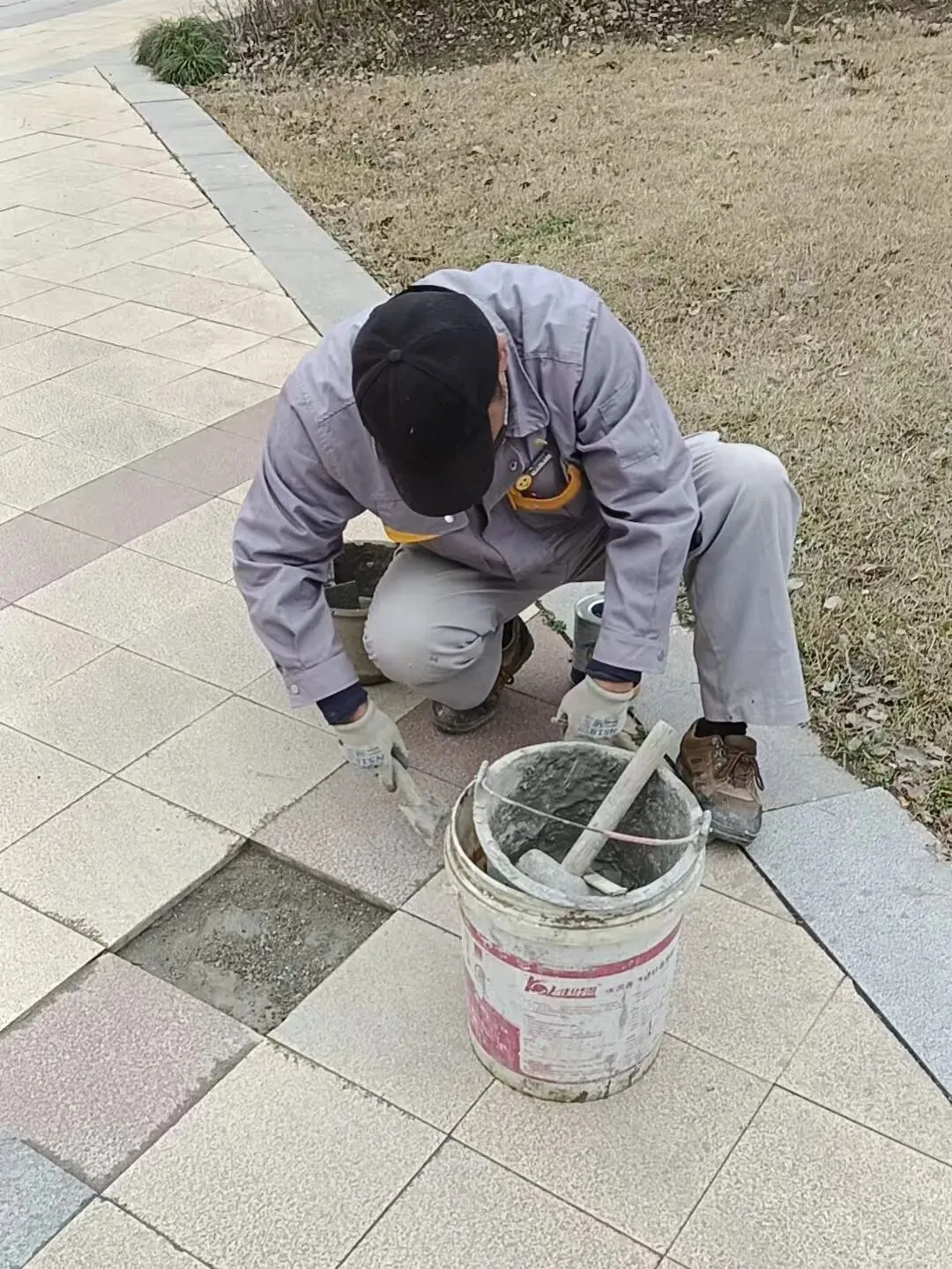 维修园区路面破损、松动的地砖,改善小区道路状况,提升业主出行舒适度。