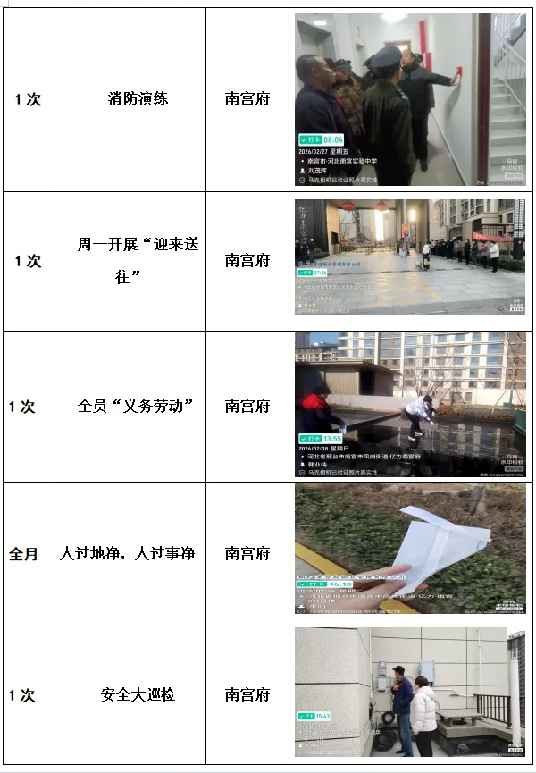 为创建一个和谐、优美、安全的园区,不断提高我们的物业服务水平,体现顺亿物业公司“注重细节,精诚团结,超越一切”的企业精神,现将本公司所服务的亿力南宫府2026年2月的物业服务工作报告,呈报于顺亿物业的家人,以便大家能够较全面地了解我们服务的内容,敬请您提出宝贵的意见。谢谢!
