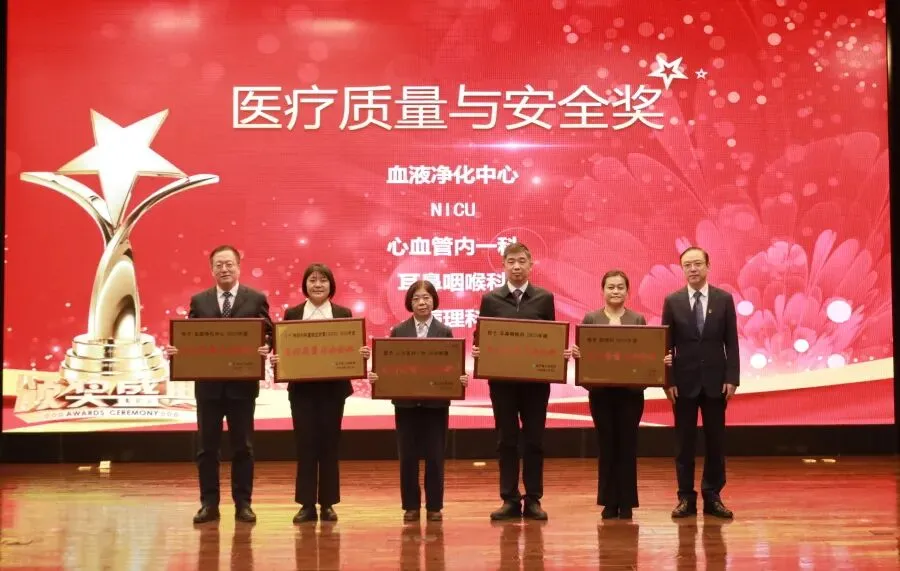 院长臧培卓为医疗质量与安全奖颁奖:血液净化中心、NICU、心血管内一科、耳鼻咽喉科、病理科