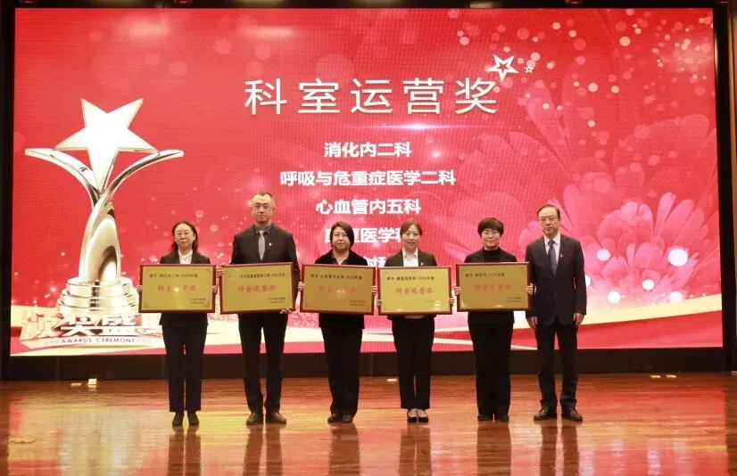 院长臧培卓为科室运营奖颁奖:消化内二科、呼吸与危重症医学二科、心血管内五科、康复医学科、放射科