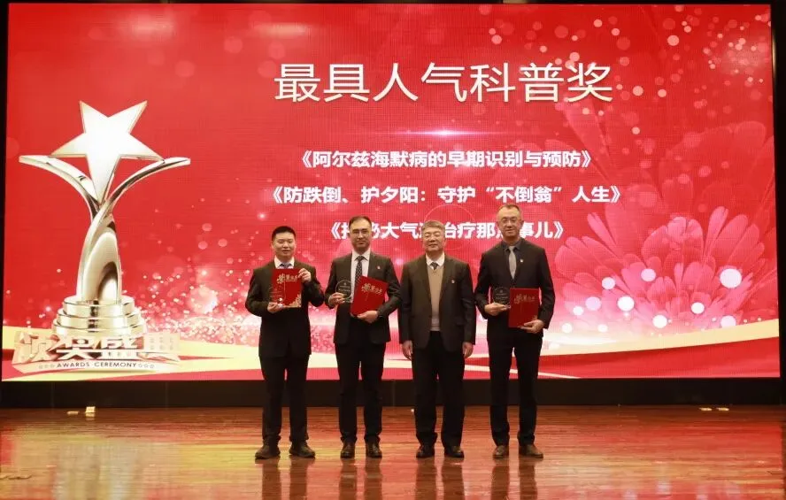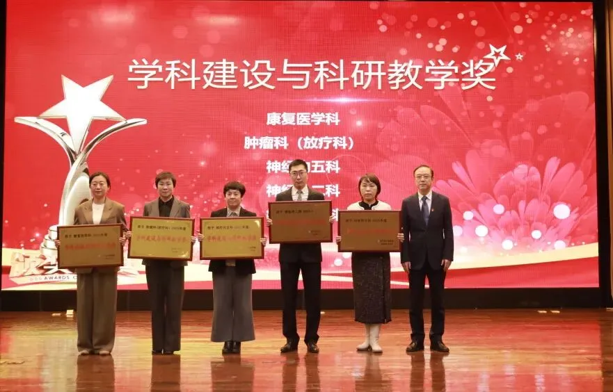 院长臧培卓为学科建设与科研教学奖颁奖:康复医学科、肿瘤科(放疗科)、神经内五科、神经外二科、检验医学科