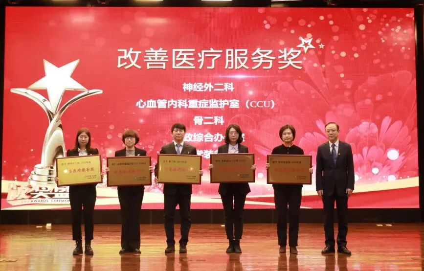 院长臧培卓为改善医疗服务奖颁奖:神经外二科、心血管内科重症监护室(CCU)、骨二科(创伤与关节外科)、党政综合办公室、医学装备部