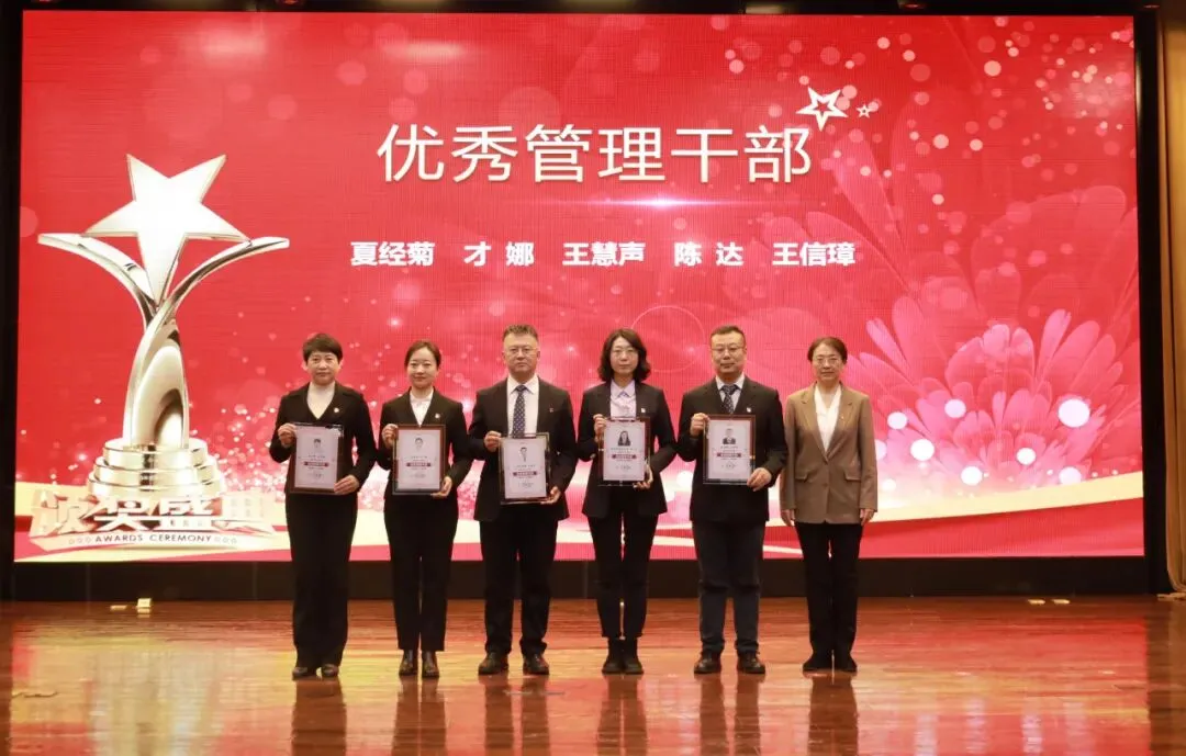 副院长李艳玲为职能部门优秀中层管理干部获得者颁奖:夏经菊、才娜、王慧声、陈达、王信璋