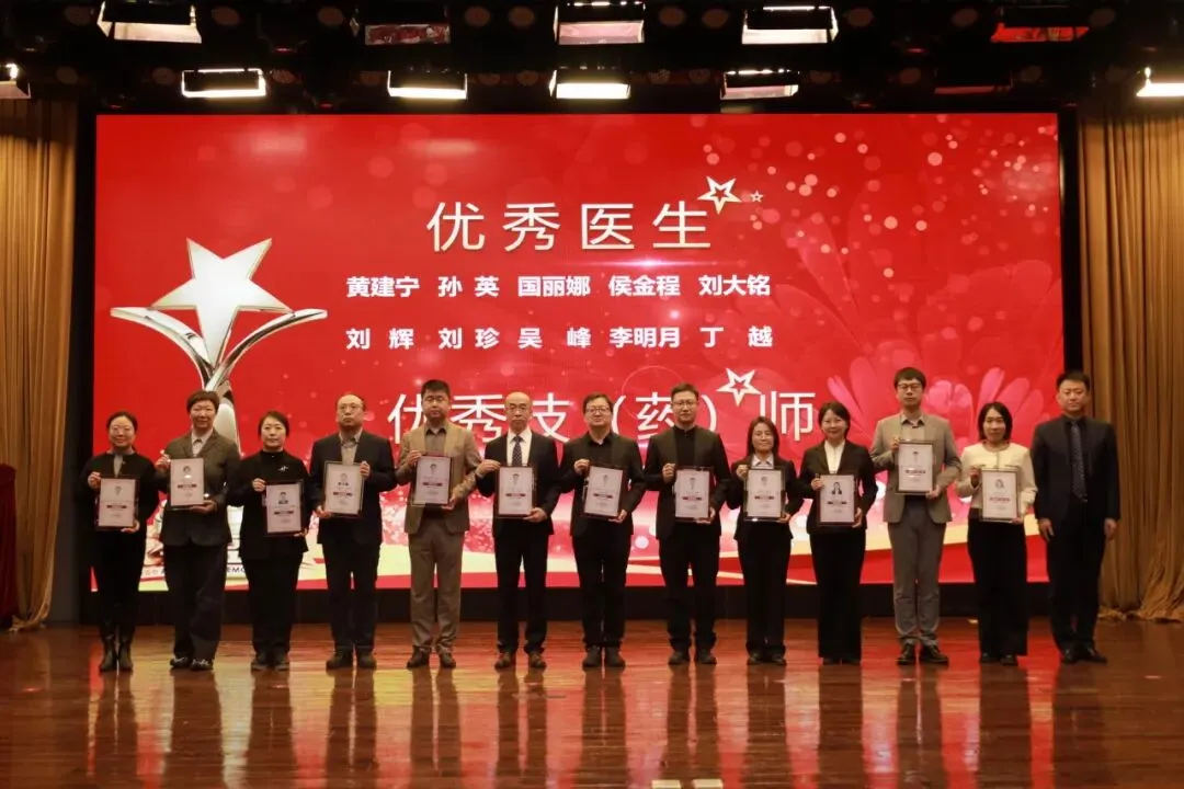 副院长李岩峰为优秀医生、优秀技(药)师获得者颁奖:黄建宁、孙英、国丽娜、侯金程、刘大铭、刘辉、刘珍、吴峰、李明月、丁越、姜思远、韩佳容