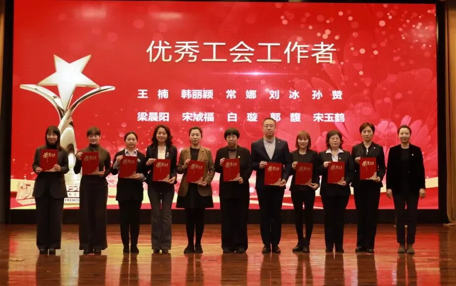 纪委书记丁大璐为优秀工会工作者获得者颁奖:王楠、韩丽颖、常娜、刘冰、孙赞、梁晨阳、宋虓福、白璇、郭馥、宋玉鹤