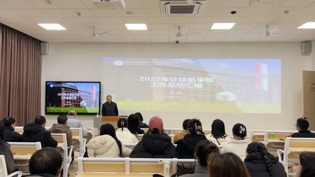 2024年1月12日上午9:00,计算机学院在十教411教室召开了本年度工作总结大会,计算机学院全体教职工参会。