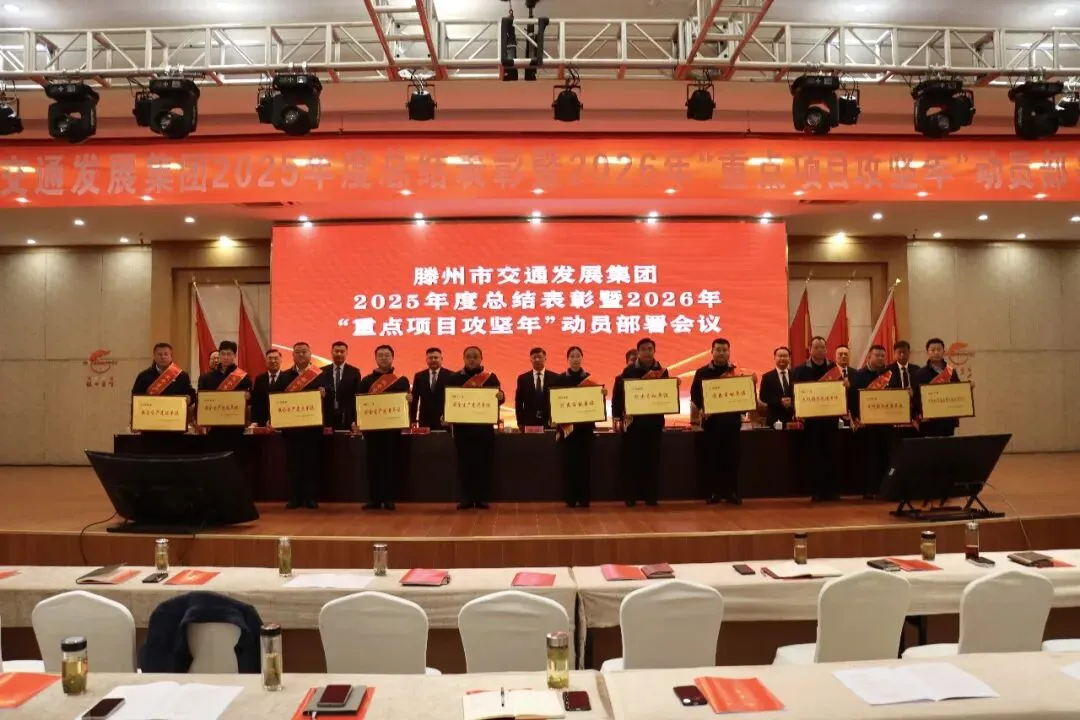 市委常委、副市长赵炜充分肯定了交发集团2025年度取得的工作成绩,并向受到表彰的先进单位和个人表示祝贺。他指出,交发集团作为我市交通领域唯一市属国有骨干企业,在交通基础设施建设、公共运输服务保障、产业创新转型发展等方面担当作为、奋勇争先,为滕州经济社会高质量发展提供了坚实交通支撑、有力国企保障。他强调,交发集团要把思想和行动统一到市委、市政府决策部署上来,统一到集团改革发展目标任务上来,强化责任担当、狠抓工作落实,全力以赴完成全年各项目标任务,助推我市高质量发展打下坚实基础。要始终把党的政治建设摆在首位,坚持用党的创新理论武装头脑、指导实践、推动工作,自觉在思想上政治上行动上同市委、市政府保持高度一致。要牢牢把握高质量发展首要任务,紧紧围绕做强做优做大国有资本核心目标,切实扛起国有资产保值增值根本责任。要强化市场意识、培育新质生产力、狠抓降本增效,改革创新增活力,在市场竞争中锻造更优能力。要牢牢扛起经济责任、政治责任、社会责任,以“重点项目攻坚年”活动为总抓手,健全机制、压实责任、闭环落实,履职尽责抓好落实。要全面加强内控体系建设,重点规范投资、债务、预算、合规等关键环节管理,从严落实党风廉政建设责任制,严格执行“三重一大”决策制度,织密制度防线、筑牢廉洁堤坝,引导干部职工知敬畏、存戒惧、守底线,营造风清气正、干事创业的良好政治生态,奋力书写新时代国企高质量发展合格答卷。