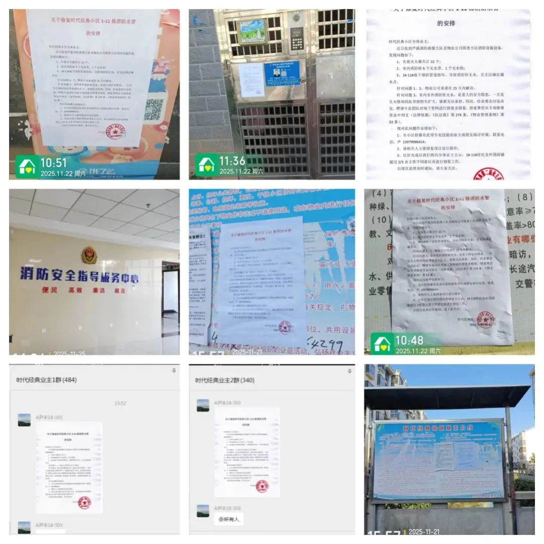 于是在2025年11月22日,我们向业委会汇报后,将相关公告发布在业主群及粘贴在1#-11#栋单元门上。