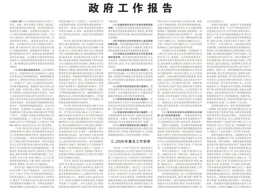 近日,2026年南阳政府工作报告全文公布。